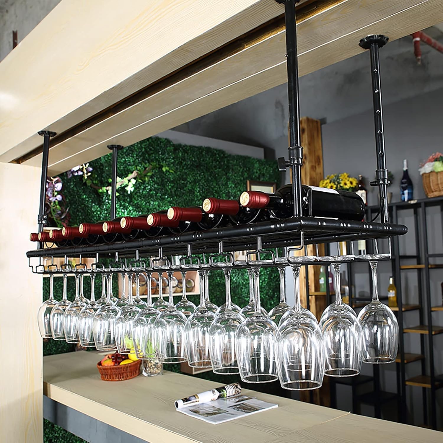 Smooth and Easy to Clean, Durable, Easy to Install, Beautiful and Generous,Ng Beacapacity.This Ceiling Hanging Shelf Can Save Cabinet Space, to Store Your Wine Glasses Neatly. No Longer Have to Worry About the Glass Being Knocked Out Accidentally.Suitable for Any Flat Surface Area in a Pantry,Restaurant, Bar, Kitchen, Wine Cellar,Wine Cabinet,Studyor ,Commerce and Entertainment.This Hanging Wine Glass Rack Set is a Great Gift Idea for Lovers, Families, Friends, or As Housewarming Gift.You Need a Wine Glass Rack under Cabinet Now!If You Need Consultation or Customization, You Can Contact Us by Email.