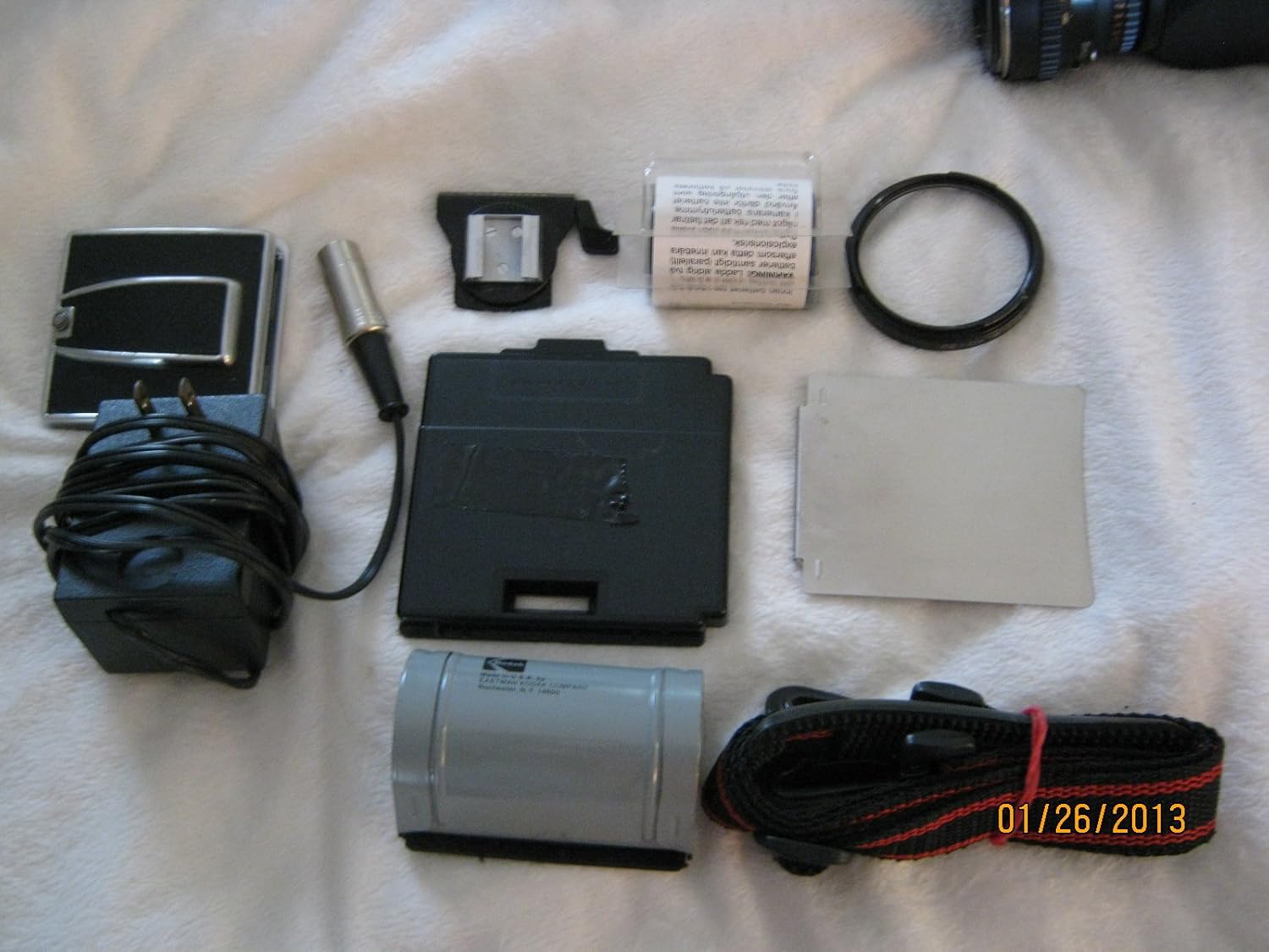 This very special Hasselblad is one of 500 limited edition cameras commemorating 10 years from the first landing on the moon. There were only 500 of these cameras issued in black. This camera has been fully tested and inspected. This camera body comes with its original battery charger and body cap. This camera does not come with batteries or an adapter. Its fuse has been tested and it is in good condition. There are some light scuff marks on the cameras exterior. Let the photos be your guide.