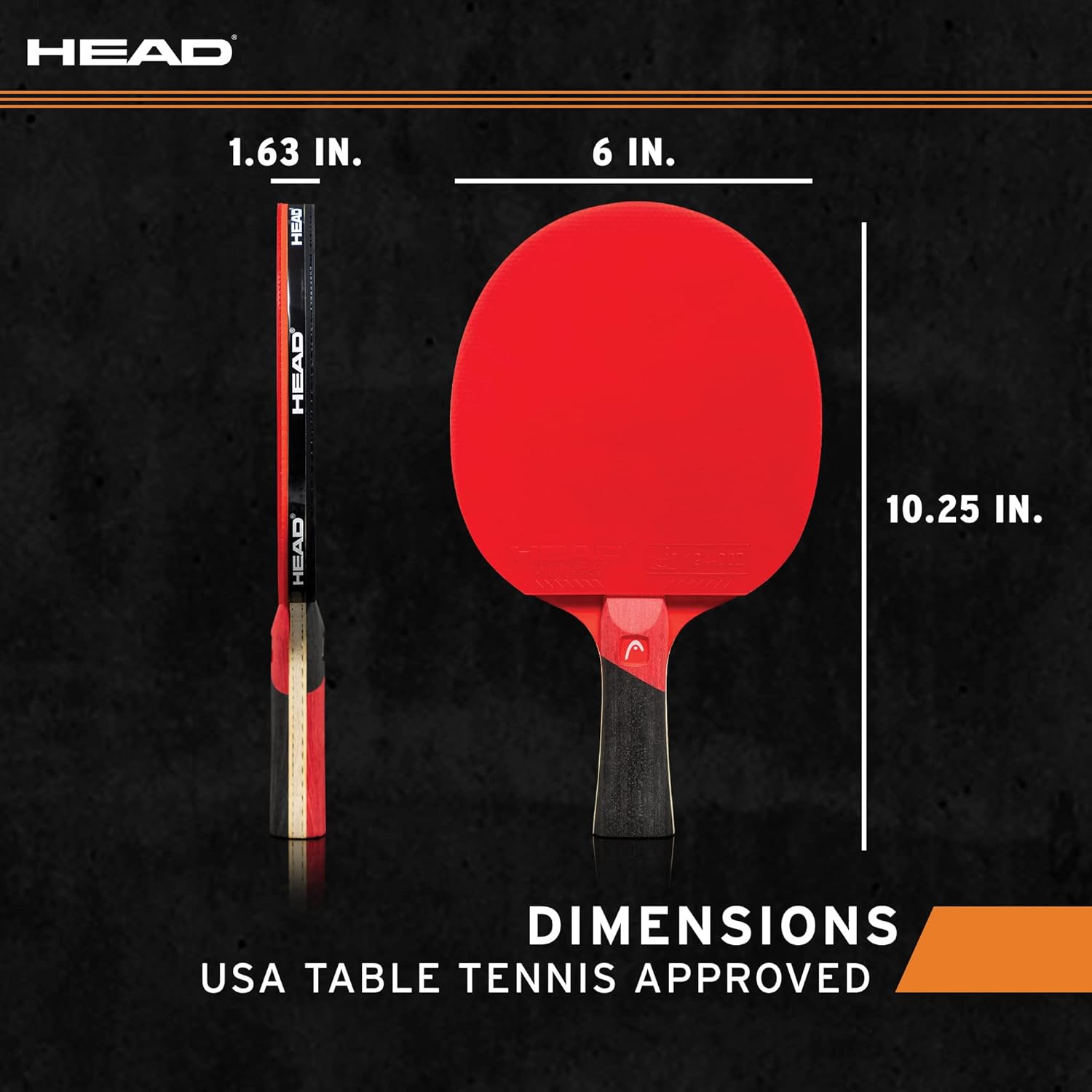 The Head Pro Strike Premium Table Tennis Paddle is raising the standard for professional ping pong paddles. So lightweight, yet so responsive and powerful, this paddle feels like an extension of your body once the competition heats up. The 5-Ply Carbon-Fiber backed blade offers an unmatched balanced feel and an edge-to-edge sweet spot. Ultra-sponge 2mm rubber backing offers precision control on power strikes and is still forgiving enough to absorb and return shots. Use the high-tack pips-in rubber paddle surface to generate an enormous amount of spin to keep the ping pong ball down and on the table. Power top-spin strikes, slicing dribblers, or bending corner shots are all on the table with this professional table tennis racquet. Head has long been at the pinnacle of racket sports, and the Head Pro Strike Table Tennis Paddle is no exception. From the carbon-fiber and exotic lightweight hardwood blade to the ultra-sponge backing and high-tack rubber, this is the best table tennis racket available.