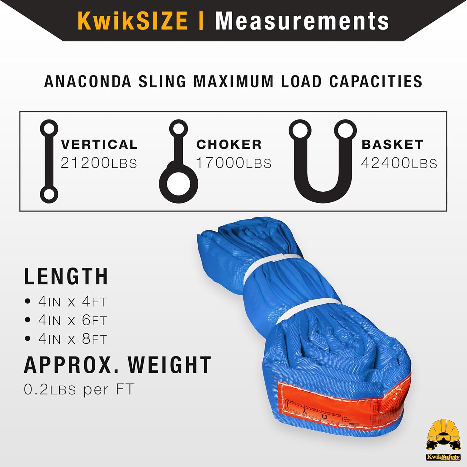 KwikSafety High Quality Eye-Eye Slings are manufactured from lightweight and heavy duty materials that has been surface "treated" to improve abrasion resistance, seal out moisture, and prevent grit from penetrating the web and causing internal wear. Our Eye-Eye lifting slings are heavy duty and is a popular, versatile sling used in vertical, choker & basket hitches with easy to remove from underneath loads. This sling meets American Society of Mechanical Engineers (ASME) specification B30.9 and Occupational Safety and Health Administration (OSHA) specification 1910.184. These slings are used to lift heavy and light objects for industrial applications. These well engineered and tested products are the most trusted to provide unique, simple solutions for specific everyday industrial needs, offering reliability, security, safety, and ease of use. Slings without testing certificates face heavy risks with regards to performance in the field such as: acid or caustic burns, melting or charring, holes, tears, cuts, snags, broken/worn stitching in load-bearing splices, excessive abrasive wear, knots, excessive pitting or corrosion, or cracked, distorted or broken fittings, other visible damage or missing/illegible markings etc... Thus, The ASME Standard B30.9-2006, Safety Standard for Cableways, Cranes, Derricks, Hoists, Jacks and Slings, applies to slings intended for lifting made with sewn synthetic webbing and synthetic fiber rope. The Standard describes technical requirements for construction, load rating, proof testing, identification, maintenance, environmental effects, end attachments, inspection, repair and use.