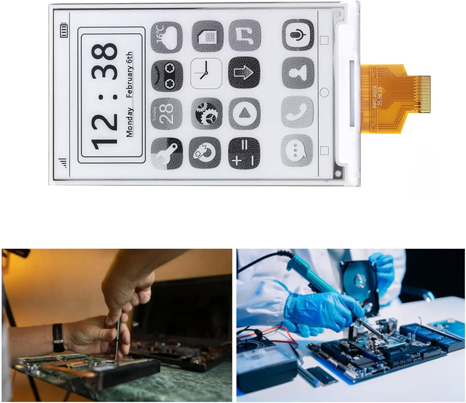I2C Compatible 4.26Inch EPaper Display Featuring Touch for Embeddedly Systems Features: low power consumption with this 4.26inch Capacitive epaper Touchable screen, featuring fast partial refreshing of just 0.42 seconds and capacitive touch for seamless interaction This E Paper Display boasts 800x480pixels, 4 grayscaled, and SPI / I2C interfaces, ensuring crisp text and images in various lighting conditions with easy integration Ideal for students, developers, and elderly users, this capacitive touchable screen enhances learning tools, and medication reminders with intuitived operating and accessibility features Perfect for applications like retail labels, portable electronic dictionaries, and personalizing door signs, providing a clear, paper like display with minimal power consumption in everyday use This efficient E Paper Display, reducing paper waste and CO2 emissions while offering superior sunlight readability compared to traditional LCDs Specifications: Type: ePaper touchable screen Component: LCD Size: 10.53cm / 4.15in as shown in the picture Display size: 4.26 inches IC: SSD1677 Type: Graphics lattice Resolution: 800x480 Overall dimensions ( mm): 105.33x62.37x0.926 Field of view size ( mm): 92.8x55.68 Point spacing ( mm): 0.116x0.116 Connector: 24Pin FPC, pitched: 0.5mm Color: black and white Fast refreshing time: 1; Bureau brushing time ( S): 0.76; Full brushing time ( S): 4 Package types: A Screen Only; B Screen and CO2 adapter board; C Screen and development board set Package Includes: 1PC ePaper touchable screen Note: Please allow 1-2cm errors due to manual measurement Please allow for slight color differences due to different display resolution
