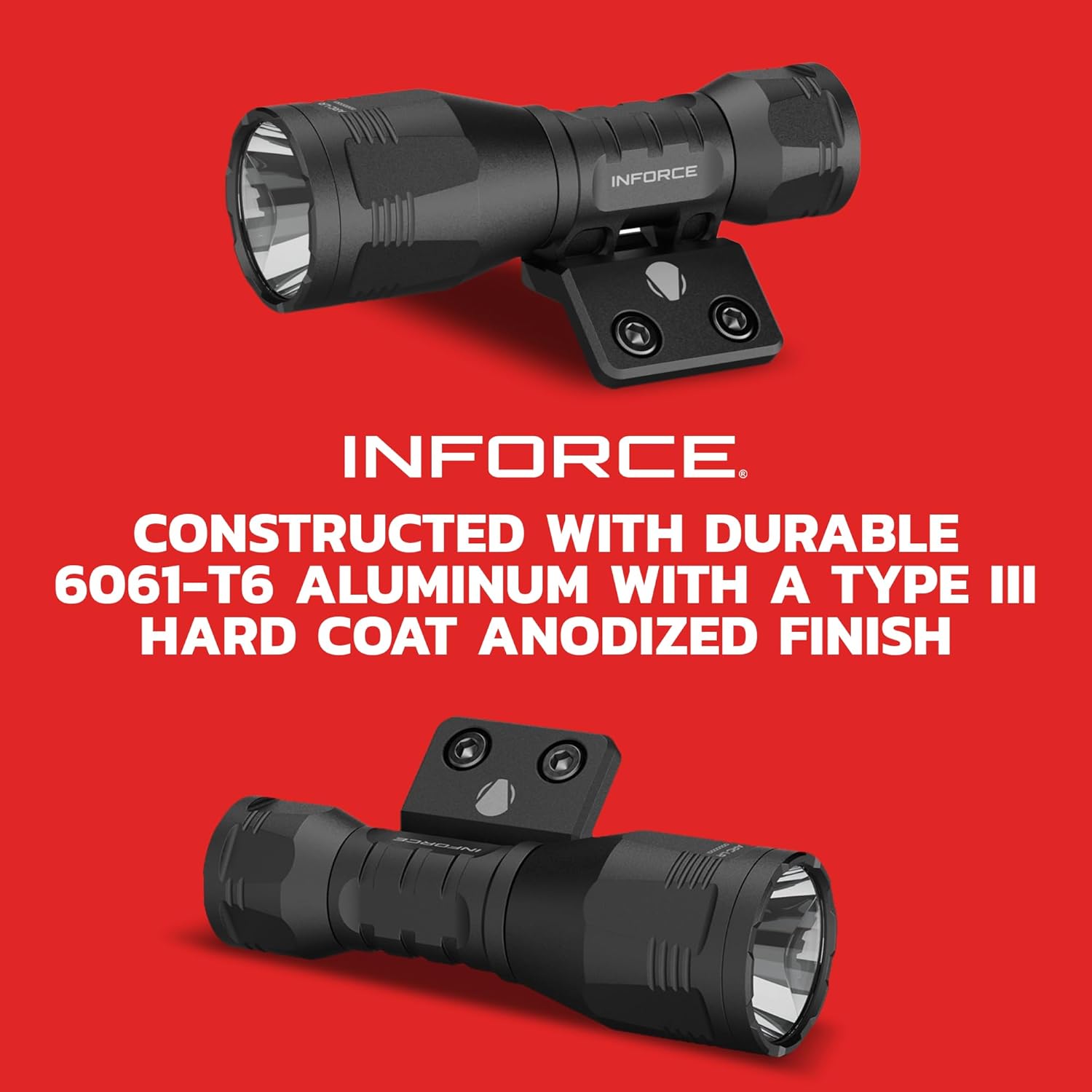 The INFORCE ARC is a modular tactical flashlight designed for professionals who demand extreme performance and adaptability. Built with the Scout footprint and thread pattern, the INFORCE ARC is highly adaptable and customizable, allowing users to upgrade existing lights with high-performance ARC components. Its LR head delivers an impressive 75,000 candela hotspot for long-range target identification, with a powerful throw reaching up to 529 meters, and 1,200 lumens of spill lighting for a wide field of view especially in CQB situations. The ARC's integrated mounting lugs are compatible with various hardware, including the included M-LOK 45 Mount, with additional options like the M-LOK Inline Mount and 1913 Offset Mount available separately. Powered by a rechargeable 18350 battery, it offers 45 minutes of continuous operation. Constructed from 6061 T6 aluminum with a MIL-SPEC type III hard coat anodized finish, the ARC is IPX8 waterproof to 20 meters and meets MIL-STD-810H specifications, ensuring performance in the toughest environments.