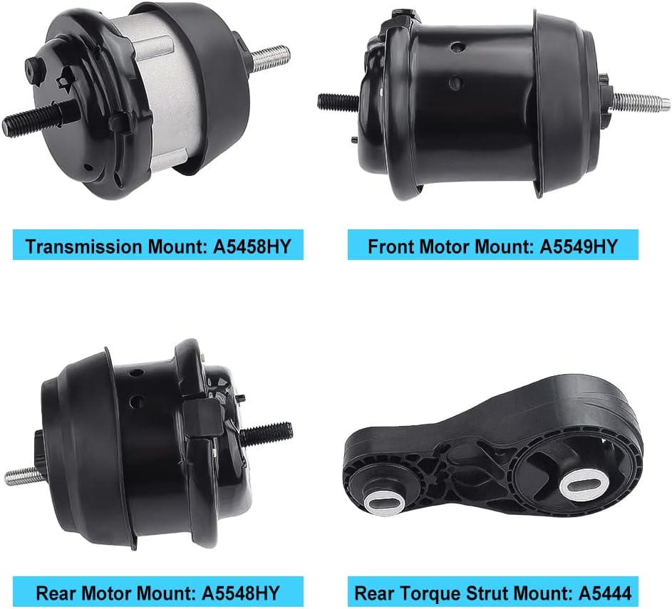• Replaces OEM Part#: Front Motor Mount: Compatible with A5549HY, 25840452; Rear Motor Mount: Compatible with A5548HY, 25840450; Compatible with Transmission Mount: Compatible with A5458HY, 25840451; Rear Torque Strut Mount: Compatible with A5444, 25840458. Please double check the compatibility of parts before purchasing.