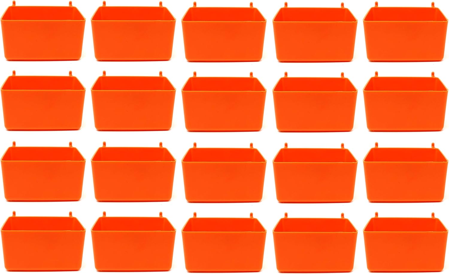 JSP Manufacturing® Small Plastic Orange Pegboard Storage/Part Bins This is a multi-pack item. Please select correct Package Quantity, price will automatically calculate. Our JSP Brand Small Plastic Orange Pegboard Storage/Part Bins are heavy duty and fit ¼ inch pegboard holes(pegboard is not included). These plastic pegboard bins are the perfect addition to your pegboard storage system and are easy to install and move around. These bins will give you the convenience and versatility in organizing your garage, tools, hobby & craft supplies, jewelry or anything you need handy and neatly arranged. Organize your craft room, home, shop or garage with ease Small Plastic Orange Pegboard Storage/Part Bins Great for organizing small items Organize your craft room, home, shop or garage Perfect for Jewelry, crafts, tools and more Our Design supports heavy items easily Fits all ¼ in pegboard holes ONLY - (WILL NOT FIT 1/8 inch or 3/16 inch Pegboard holes) Not sure if the hooks will fit your Pegboard - See our images for an easy way to determine if these hooks will work on your pegboard Peg board is NOT Included Heavy duty and stable Easy to Install Pack Sizes Available: 5, 10, 20, 25, 50, and 100 Pack The package quantity you select above is what you will receive Color: Orange Made in USA **Peg board is NOT Included, photo used as reference only** Brand: JSP Manufacturing MPN: PB-BIN-SMALL-ORANGE-VAR Measures Approximately: see image of red bin Width: 2.75 inches Length: 3.5 inches Height: 2 inches Fits: 1/4" pegboard holes ONLY – WILL NOT FIT 1/8 inch or 3/16-inch Pegboard holes