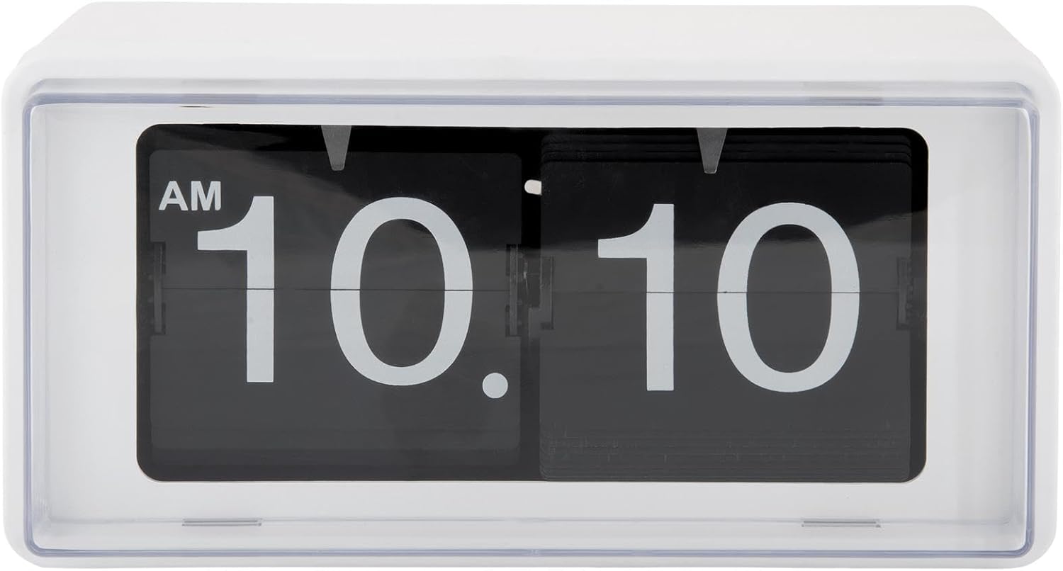 Appearance: Main Material: Plastic (ABS) Size: Height (in cm): 10 Length (in cm): 20 Depth (in cm): 10 Other features: Additional information: Can be placed or wall mounted. Requires 2 x AA batteries (not included). Movement type: Flip Weight (in kg): 0.50 Retro Boxed Flip Clock