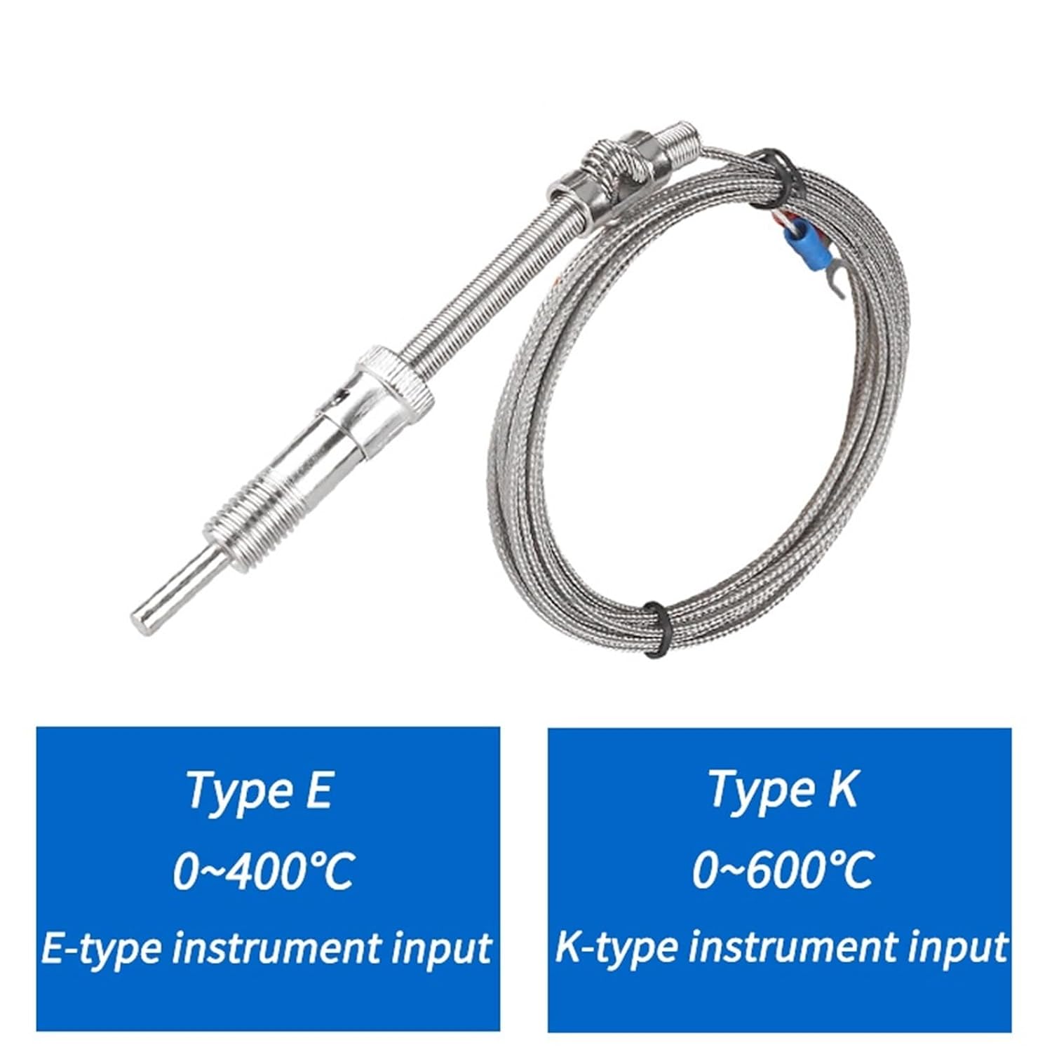 Current SwitchesK typeBayonet Compression Spring typeThread, M12*1.5Material, Stainless steelCable Internal Insulation, FibreglassCable External Shielding, Metal Shield BraidingCable Length:1m/2m/3m/4m/5mTemperature:TYEP E(0-400°C Degree)TYEP K (0-600°C Degree) Measure Type : EScrew : M12*1.5Cable Length : 1mType : KTheory : Temperature Controller Model Number : K / E type Max Measuring Temperature : 120°C & AboveUse : Industrial