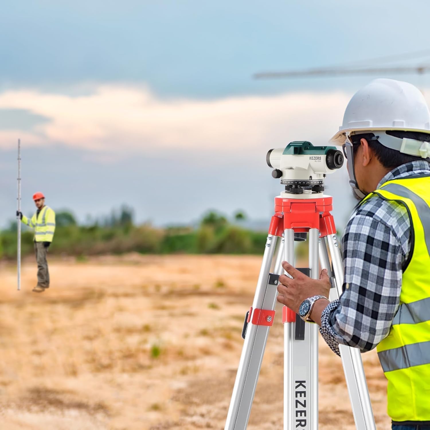 KEZERS 32X Automatic Optical Level Kit with Tripod, Self-Leveling Magnetic Dampened Compensator and Transport Lock, Aluminum Survey Tripod, 9FT Grade Rod