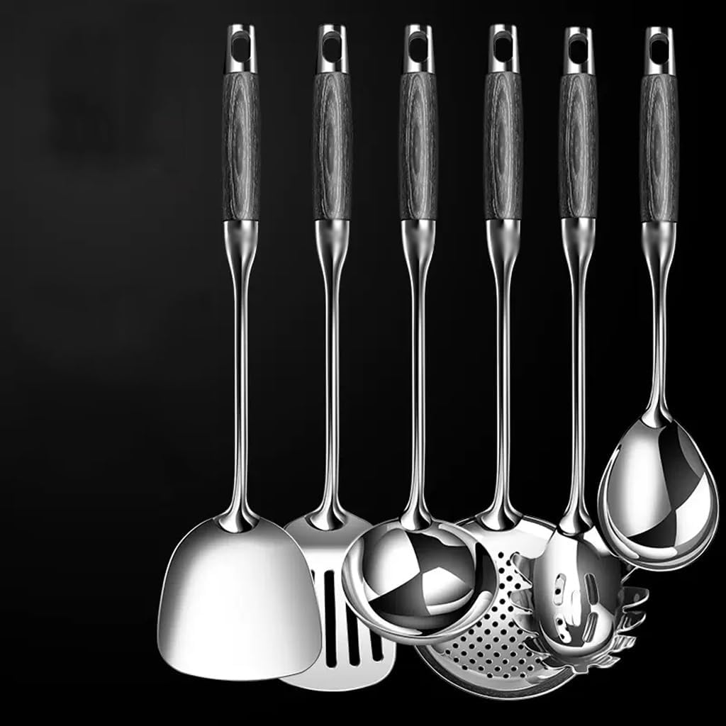 Polished and polished, as smooth as a .The process is not easy to hide dirt, and cleaning is convenient and labor-saving.Thickened stainless steel forged material, thick, sturdy, and .The edge of the spoon is round and smooth, and every sip of soup can be easily scooped out.Hanging holes are used for storage, saving space.Name: Kitchenware SetMaterial: stainless steelColor: As shown in the pictureNumber of pieces: 6Specification: Kitchenware set * 11. Due to screen display differences, there may be slight color differences in the visual. Please refer to the product received.2. Manual measurement may have slight errors, please understand.