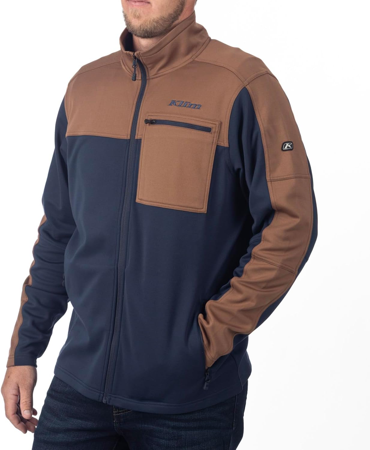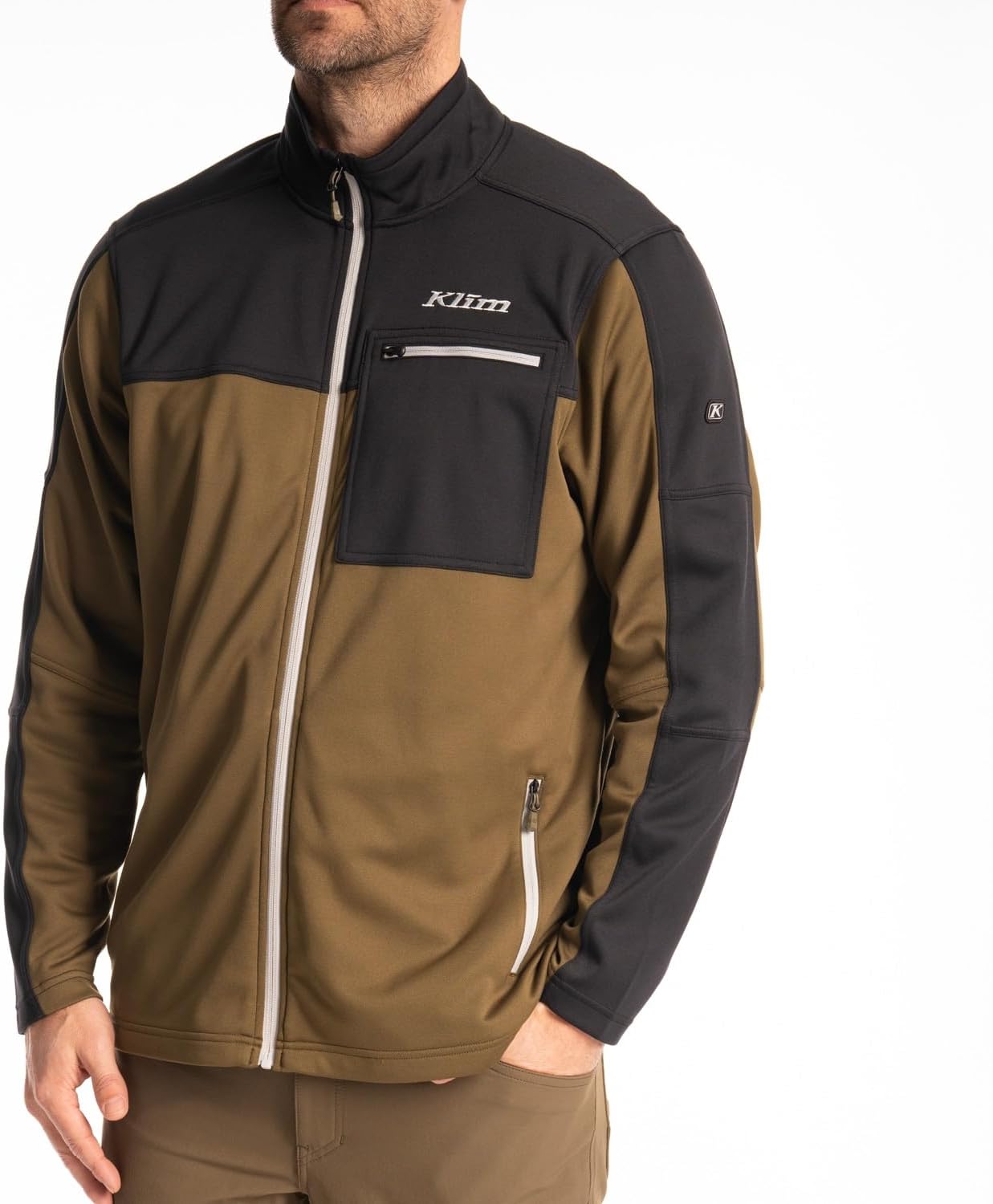 The Glacier Jacket is a midweight stretch fleece with moisture-wicking technology and heat-trapping collar for added comfort, plus a roll-over chin guard to protect against the elements. This regular-fit full-zip fleece jacket also includes engineered stretch for breathability and unrestricted movement.