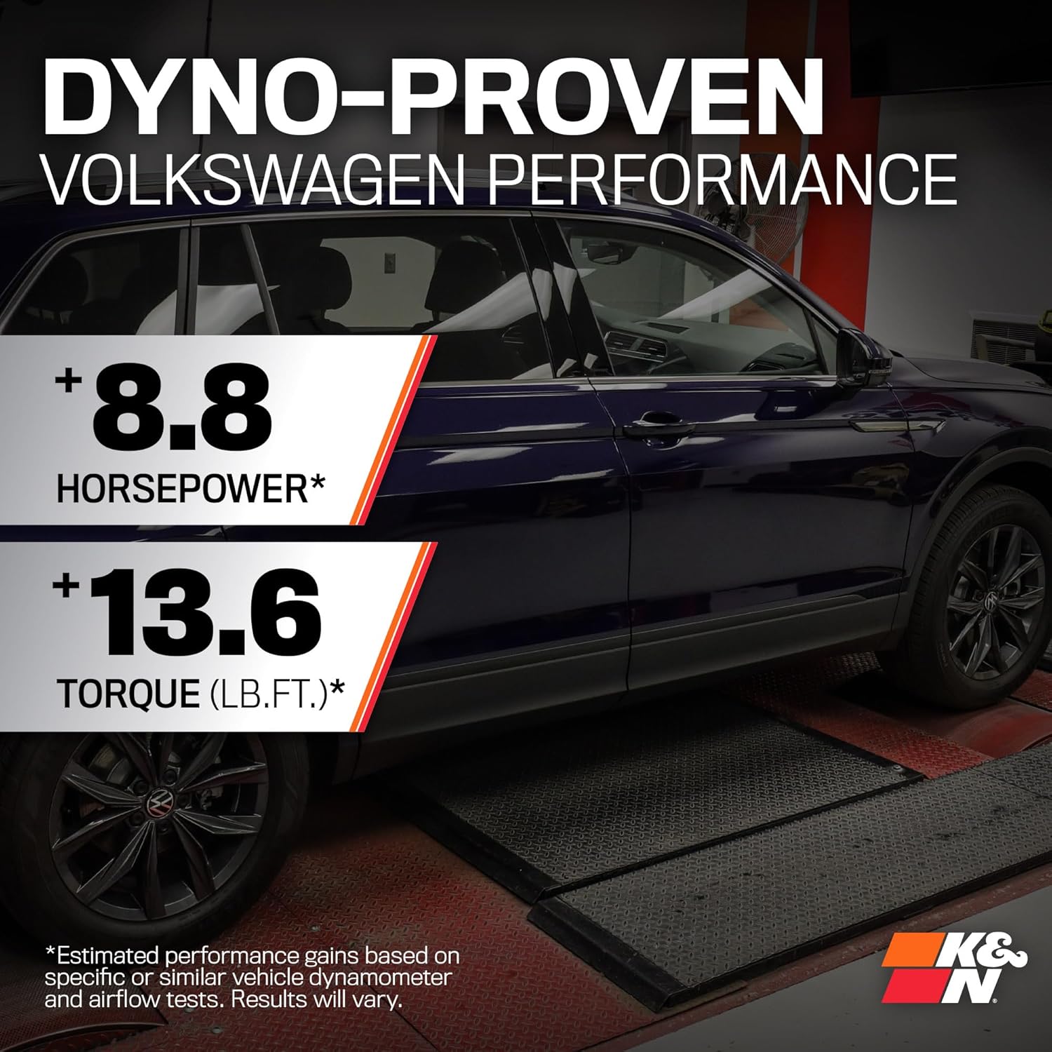 K&N is the inventor of the Air Intake System and has over 50 years of experience in the performance filtration industry. Proudly designed and manufactured in the USA, this premium cold air intake system is specifically designed for your vehicle and is dyno tested to provide a guaranteed increase in horsepower. It features a high flow intake tube, custom heat shield, and oversized K&N Washable High-Flow Cotton Air Filter for ultimate airflow. This Intake system replaces the restrictive OEM air box to provide an improved driving experience for daily driving or towing. It installs easily in about 60 minutes and is backed by a No-Hassle Lifetime Limited Warranty and will not void your factory warranty. Not legal for sale or use in California on any pollution controlled motor vehicle.Compatible Vehicles:2018-2023 VOLKSWAGEN Atlas