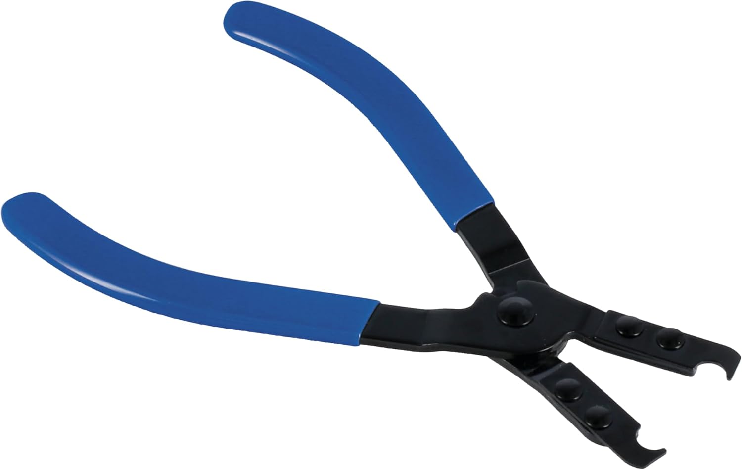 A pair of CV boot clamp pliers designed for tightening the earless type CV boot clamps used on various Volkswagen group vehicles, including Audi and Skoda, together with various Mercedes-Benz and Toyota vehicles. The head has an integral stop so that the pliers can close enough to grip without cutting, making it easy to secure clips correctly, and the handles are vinyl dipped for grip and comfort.