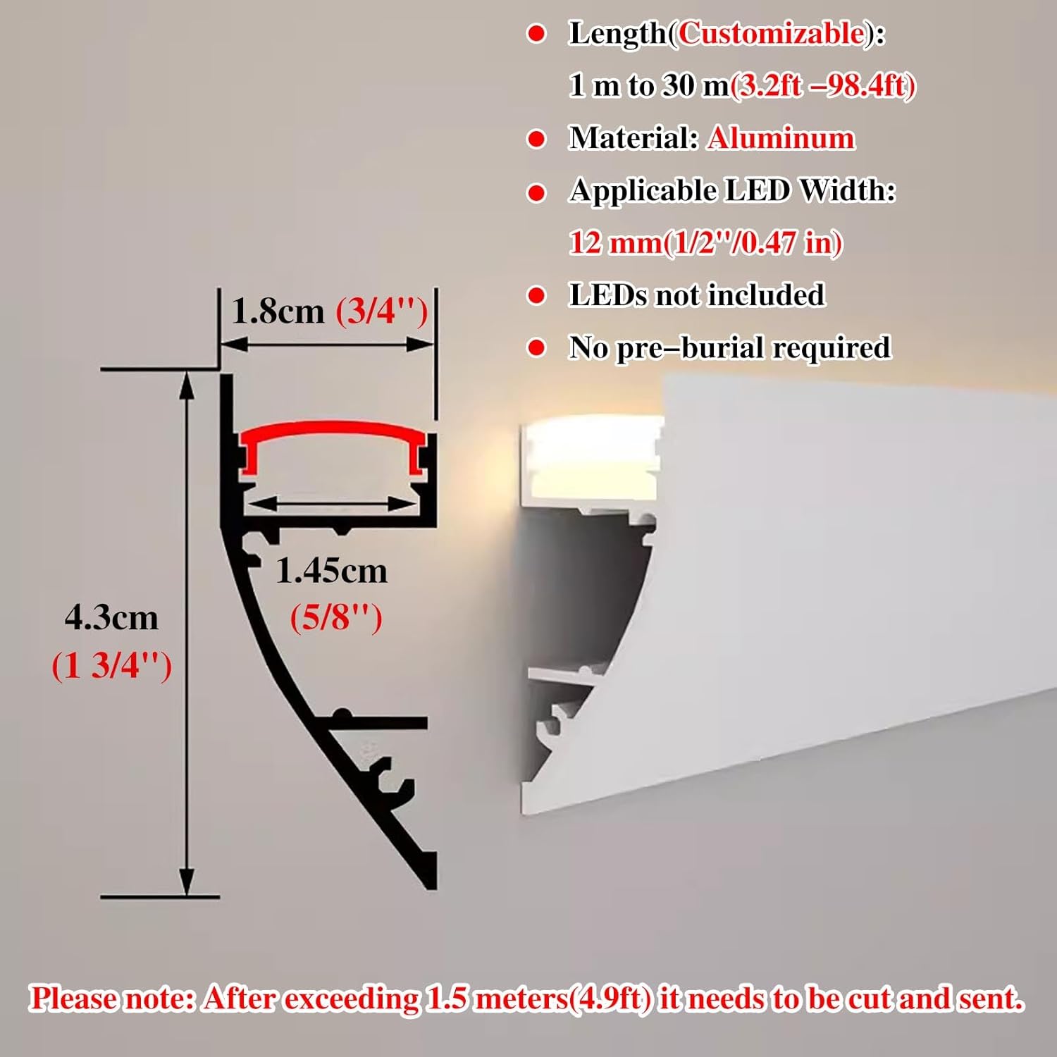Transform your living space with our premium Aluminum LED Channel, expertly designed to enhance your lighting experience. Crafted from high-quality aluminum, this channel not only assures durability but also adds a modern touch to any room. Available in sleek White and Black finishes, it seamlessly integrates into various decor styles.One of the standout features of our LED Channel is its customizable length, ranging from 1m to 30m, allowing you to tailor it perfectly to your specific needs. Whether you’re illuminating a cozy corner or creating a striking feature wall, this channel is versatile enough to accommodate both upward and downward lighting options, providing you with the flexibility to design your ambiance.Installation is a breeze with our user-friendly design that eliminates the need for complex ceiling modifications. This makes it an ideal choice for DIY enthusiasts looking to upgrade their home decor without the hassle. Plus, the elegant profile not only enhances lighting but also creates an illusion of greater space, making it perfect for smaller rooms.Please note that the LED light strip is not included; however, it is compatible with LED strips up to 12mm in width. For a polished finish, we recommend using seam sealant or repair paste to ensure seamless edges (not included). Minor size variations may occur due to manual measurements, and colors may differ slightly based on lighting and screen settings.Included in your purchase are the aluminum channel profile and all necessary accessories for easy setup. Should you have any questions or require assistance, our dedicated customer service team is here to help.