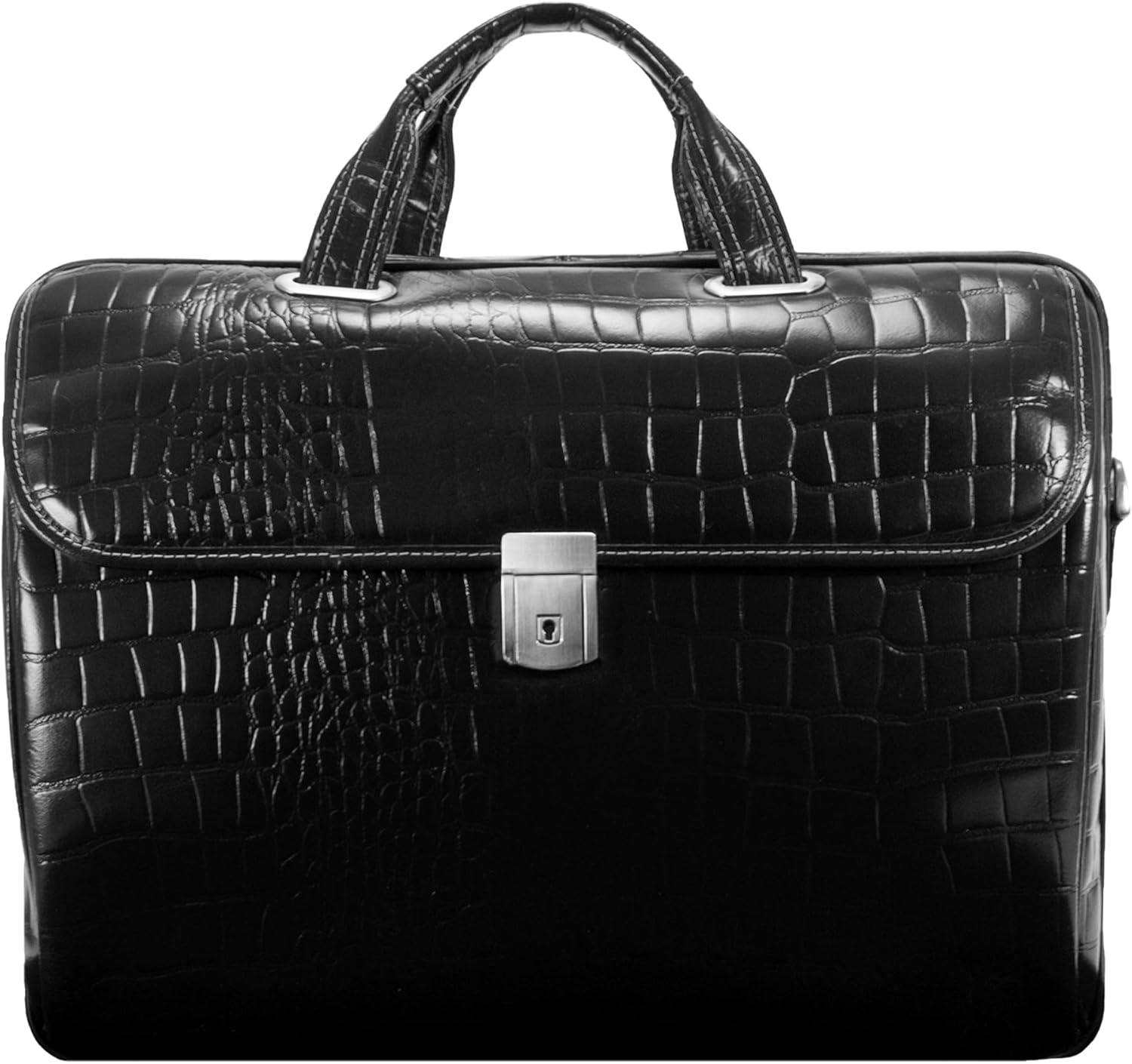A stylish Women's Laptop case designed to STAND-OUT in any office in the world. Briefcase features quick, accessible front pocket with clasp that features two small accessory pockets. Main compartment features a built-in padded laptop sleeve that fits and protects most laptops up to 13" in screen size and features a pocket for files and an interior organizer for pens, business cards and small devices. Smart Zipper Attachment allows piggy-backing on extended handles of other rolling cases and luggage.