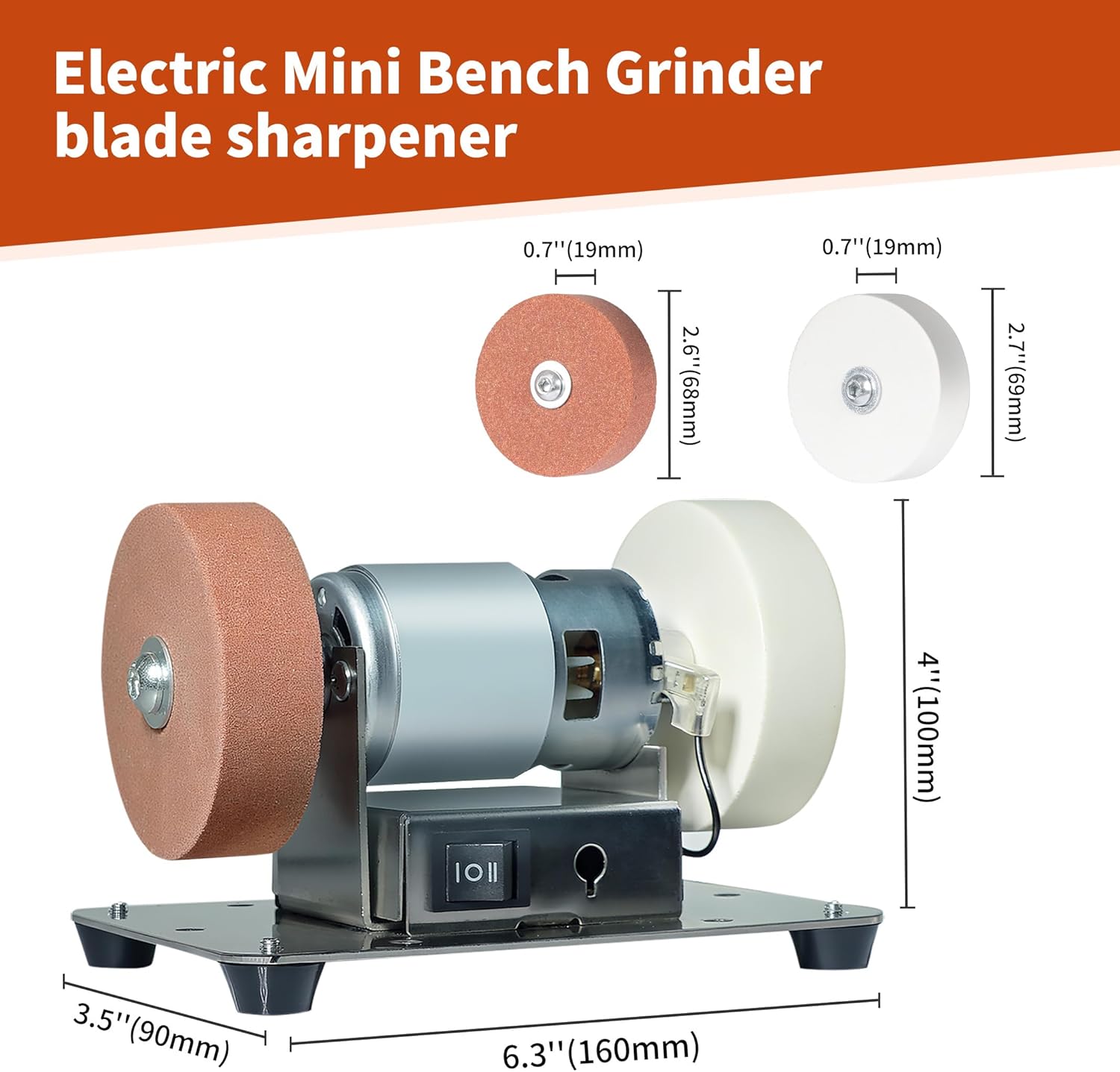 | Included Components | 1 x Adjustable speed power adapter, 1 x Mini Bench Grinder, 1 x set of installation tools, 2 x grinding wheel |