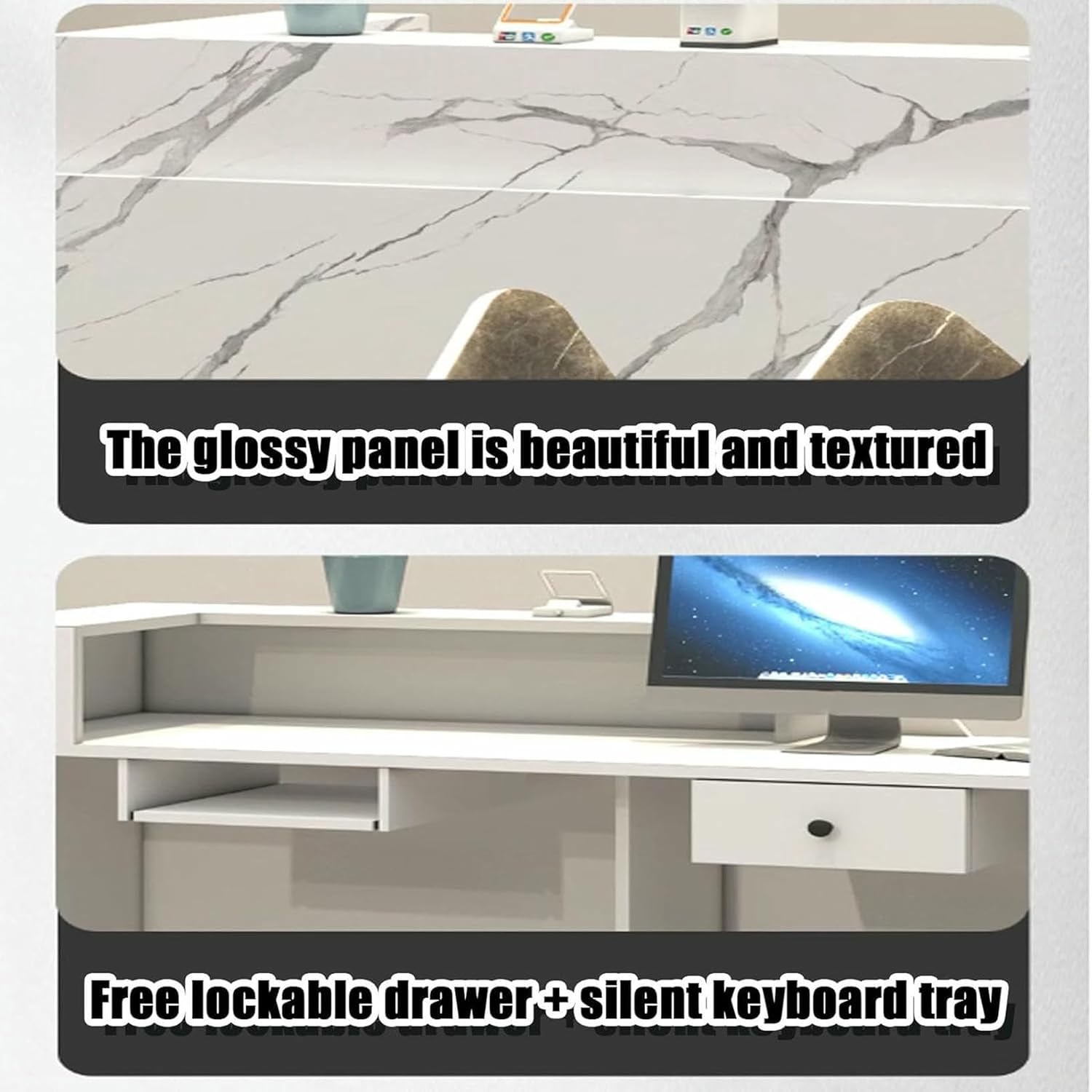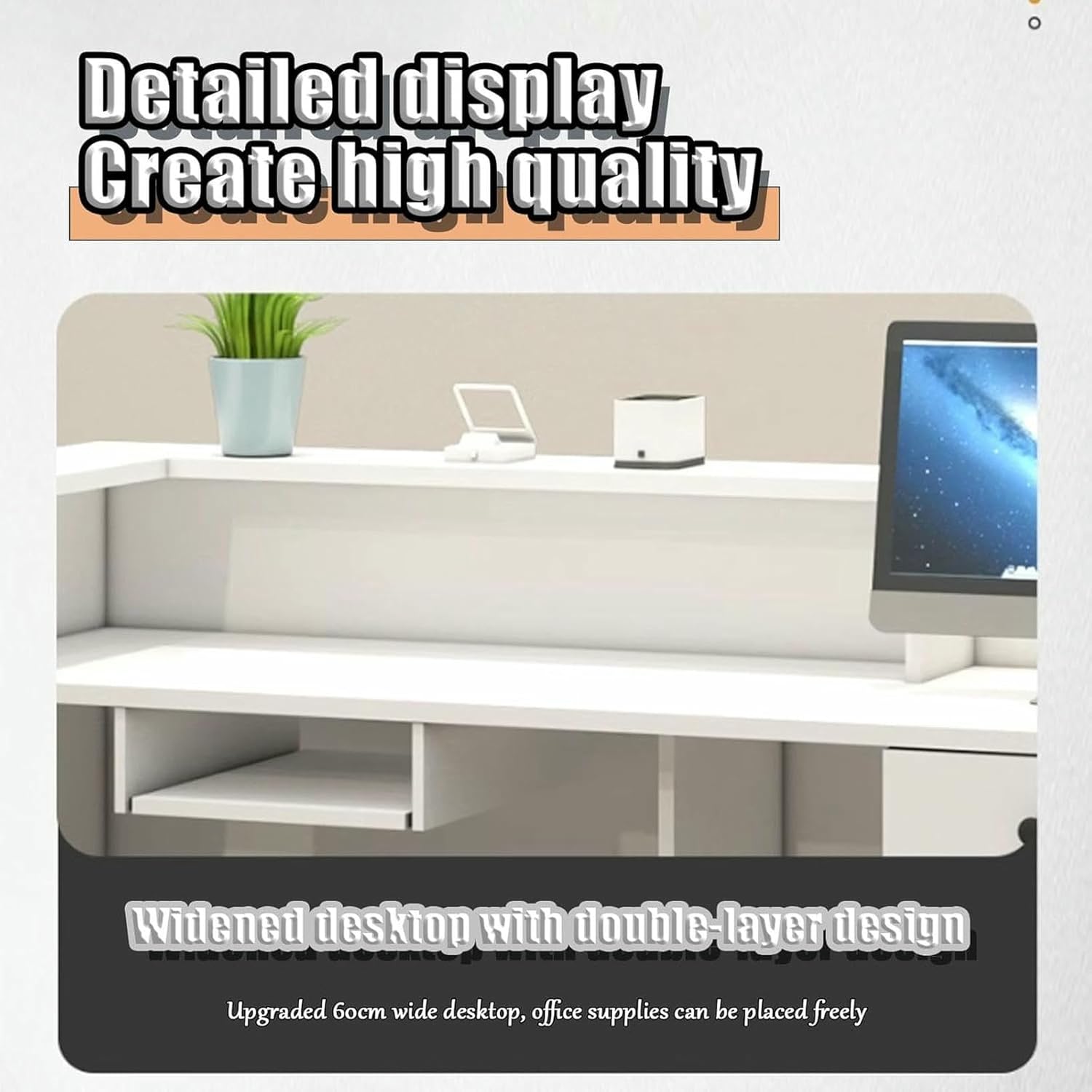 Welcome to our storeThe smooth surface is easy to clean, ensuring your workspace remains neat and beautiful without any effort. This practical and stylish reception desk is designed to enhance your business operations and provide a warm and efficient front desk solutionProduct name: reception deskMaterial: artificial boardStyle: modern and simpleColor: milky white, white, milky white, white marbleSize: 120cm/47.2in, 140cm/55.1inApplicable scenarios: reception room, lobby, beauty salon, store, clinic, office, barPlease note:- Please allow slight size differences due to different manual measurements.- Product color may be slightly different from the pictures due to different light and screen settings.To ensure your user experience, we provide 24-hour customer service to serve you. If you have any questions, please feel free to consult us.