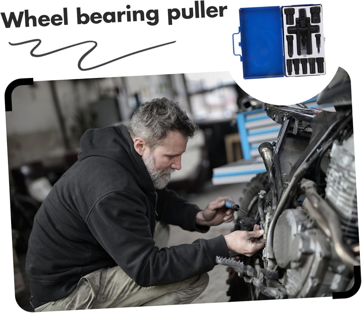 Include 10 x bearing removal tools Features -Size:22.00X15.00X4.50cm/8.65X5.89X1.77in blind bearing puller -Material:Alloy bearing puller tool -Color: bearing puller -The tool is engineered for simplicity, allowing users to perform bearing removal quickly and conveniently without requiring extensive technical knowledge motorcycle wheel bearing puller. -Crafted from high-strength materials, this bearing puller tool exceptional durability and longevity, ensuring it withstands the of frequent use bearing puller separator kit. -Packaged in an elegant box, this tool is not only easy to carry but also ensures organized storage, making it a practical choice for professionals and hobbyists alike inner bearing puller. -Featuring a two-jaw design, it offers a solid grip on bearings, significantly reducing the risk of damage during the removal process bearing separator.Goods Descriptionbearing puller kit The two-jaw design provides a secure grip on the bearing, minimizing the risk of damage during removal.bearing pullers Our motorcycle wheel bearing puller is designed for versatility, making it suitable for a wide range of motorcycle models.bearing puller tool Crafted from alloy materials, this tool ensures durability and long-lasting performance.wheel bearing tool Packaged in a sleek storage box, it is convenient to carry and store, making it an essential addition to your motorcycle tool kit.puller kit Its user-friendly operation allows for quick and easy bearing extraction, saving you time and effort