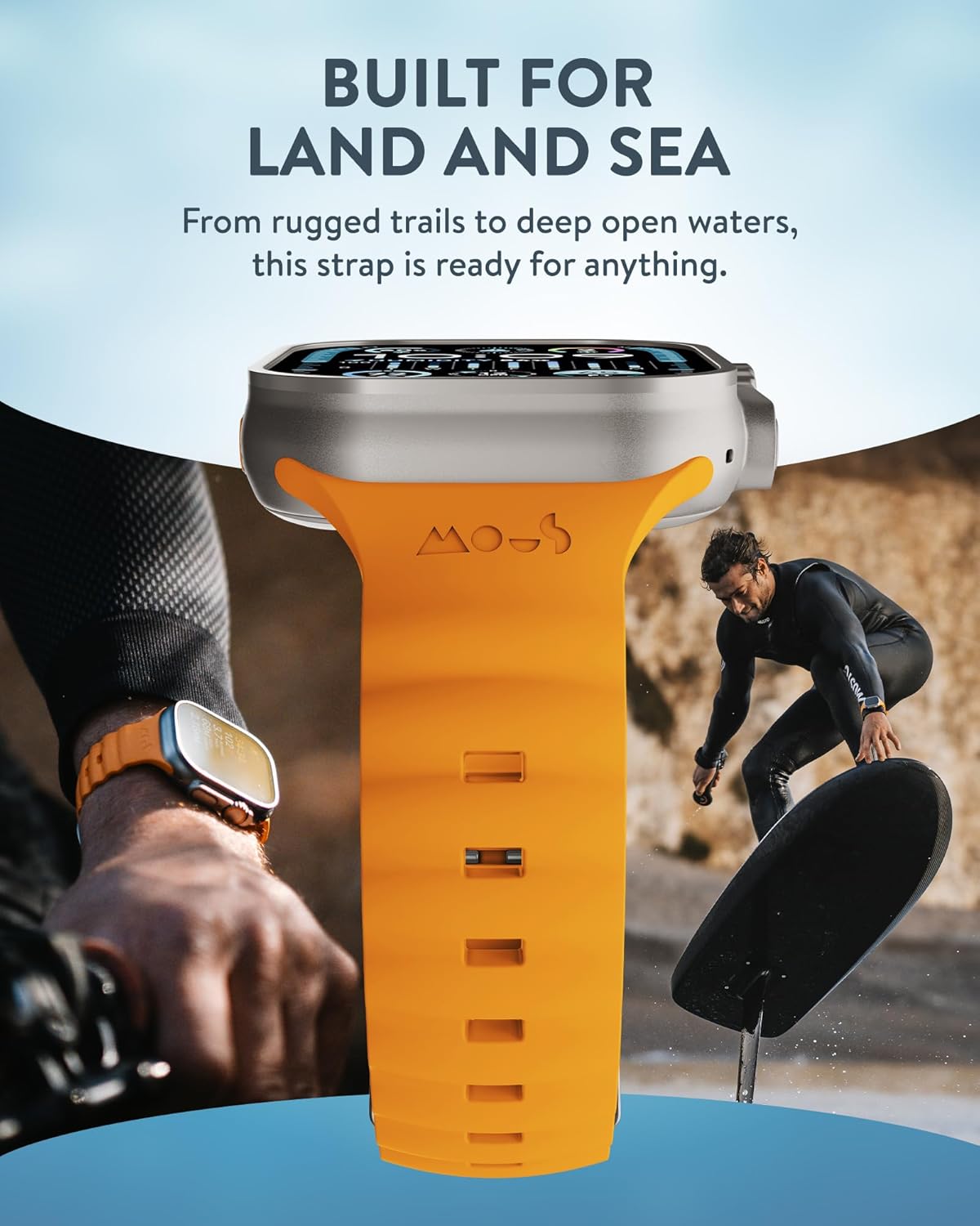 Mous Active Apple Watch Strap Compatible with Apple Watch Straps 38mm 40mm 41mm, Durable Fluoroelastomer Band, Water-Resistant, Adjustable Replacement Band for iWatch Series 9/8/7/6/5/4/3/2/1/Ultra/Ultra 2/SE, Orange, Small