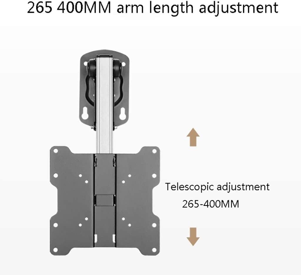 Product Specifications: Dimensions: 220x1 71 x399mm Support hole distance: 75x75mm, 100x100mm, 200x100mm, 200x200mm Applicable size: 17-37 inch TV Telescopic adjustment: 265-400MM Tilt angle: 0--- -90° Product load-bearing: 20 kg Product material: high quality cold rolled steel + aluminum alloy. Tips: 1. This product is manually measured, there is an error of 2-3cm, please refer to the actual object received