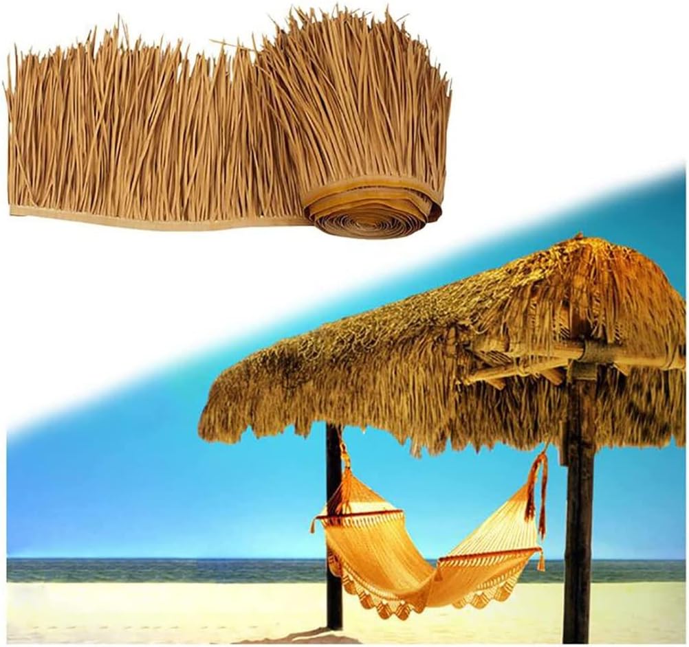 Why Choose A Simulated Thatched Roof? A High-quality Faux Thatched Roof Can Solve Unsightly Roofs,Uninteresting Gardens,Lonely Gazebos,Drab Patios,Weathered Walls,And Uninspired Carports.Product size:50cm (19.6in) width, 1/2/3/4/5/6/7/8/9/10m length. Shipped in rolls.material : Environmental protection Pe plastic.Thatch straw roof is a universal secret weapon against:1.sad gardens2.unsightly patios3.bald outdoor use4.neglected roofs5.weathered walls6.inexpressive gazebos and carportsThe artificial grass tiles is the perfect finishing touch for your dream house in the green.It can be your unique tropical landscape by the pool, or it can make the tiki hut unique.1.The installation is simple, there is no maintenance and replacement, it is an ideal material once and for all.2.In the long run, it will save you more time and money than ordinary thatch.3.if you buy 6 meters, it is 5 meters + 1 meters(5M is connected together,1 meter is separately separated )