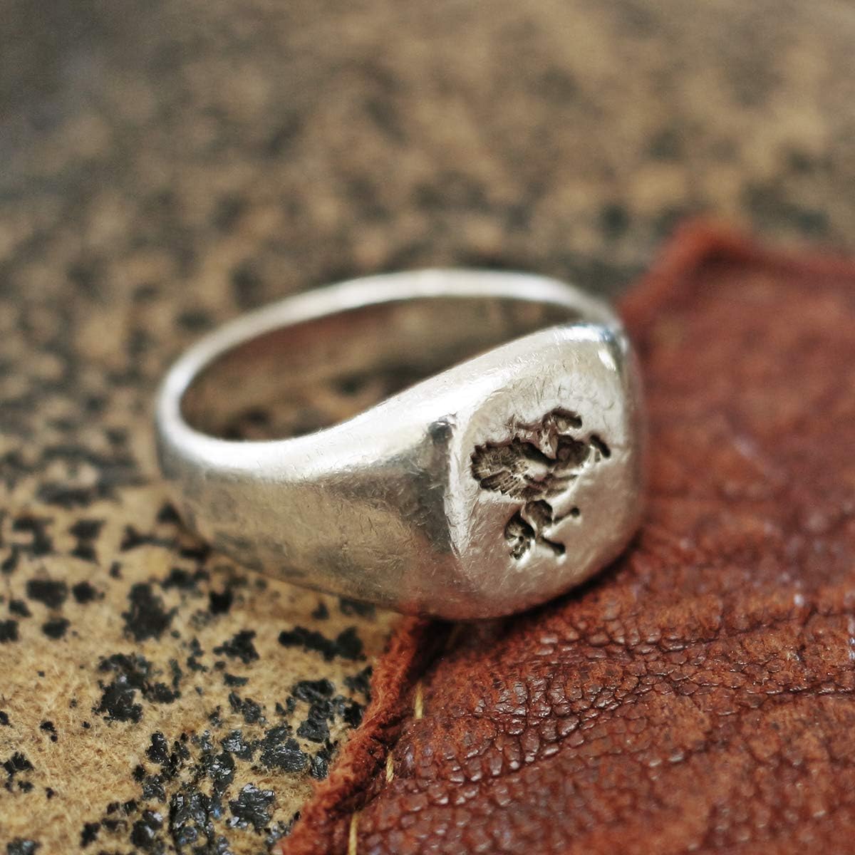 Medium weight 'Pegasus' carved wax seal ring. Worn out details is the key point of this ring. . Made of oxidized 925 silver by more than 20 years experienced jewelry smith . Item code: RS-156 . Width: 13mm, Thickness: 2mm, weight: 11g . Vintage finishing applied for aged look