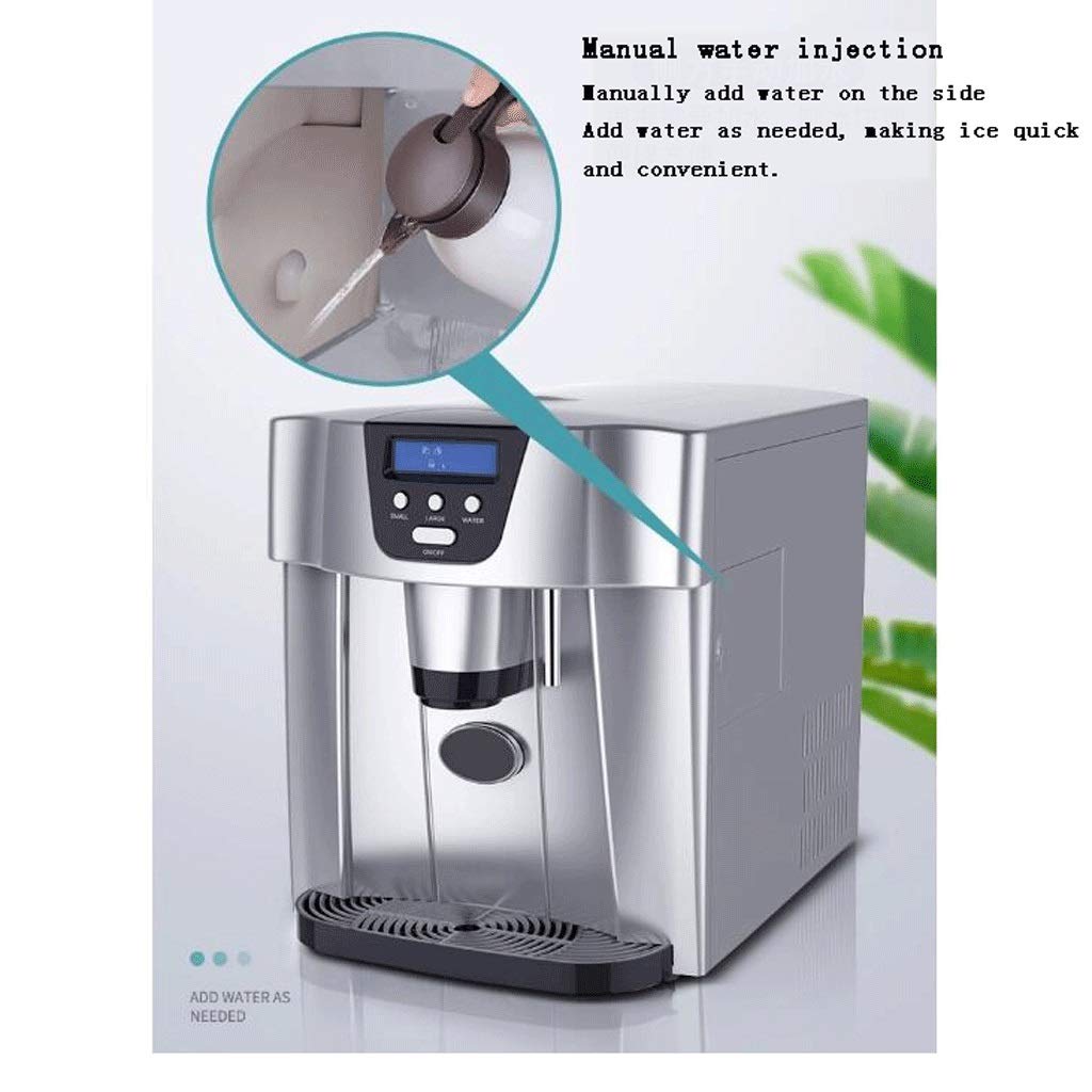 Product parameters: Rated voltage: 220-240V Rated frequency: 50Hz Input Power: 120W Ice cube shape: ball shaped cylindrical ice cube.Single ice: 9 pieces. Water inlet method: tap water/manual water injection Internal and external materials: shell: environmentally friendly ABS plastic. Smart reminder: LED indicator Ice time: 7-9 minutes. Ice 24H 10-15kg Weight: 12 kg. Dimensions: 37 x 31 x 35 cm. Note: Ice production is the data tested in a laboratory environment. The lower the water temperature, the lower the ambient temperature, the greater the production of ice.