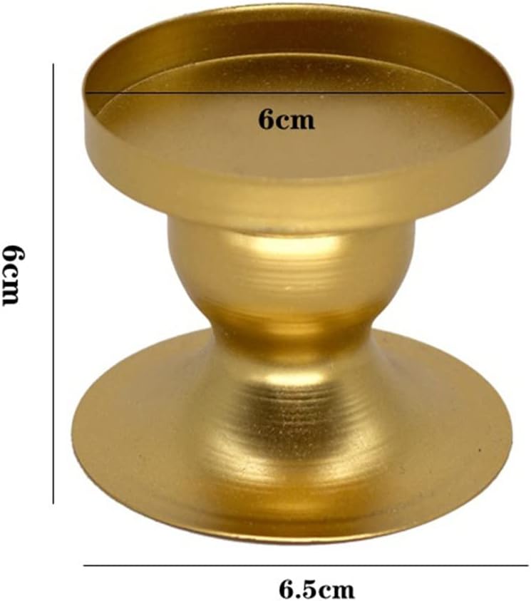 Description:The candlestick can add romantic and relax ambience to the space.Made of metal material.it is and practical.The length of the product is 6.5cm, and the height is 6cm.It is suitable for decorating home, room,party and so on.Material:MetalSize:6*6*6.5cm/2.36inx2.36inx2.56inPackage Includes:1 X CandlestickNotes:Due to the light and screen setting difference, the item's color may be slightly different from the pictures.Please allow slight dimension difference due to different manual measurement.In addition to being a practical candle holder, it also has decorative functions. Place it on the dining table or other prominent locations to fill your home with warmth and joy.