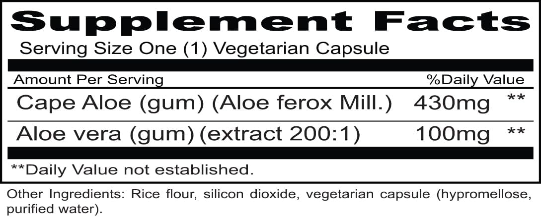 Priority One's Aloe Complex supplies a combination of wild-crafted Cape Aloe (Aloe Ferox) and a 200:1 leaf gum extract of Aloe Vera in a capsule form*
