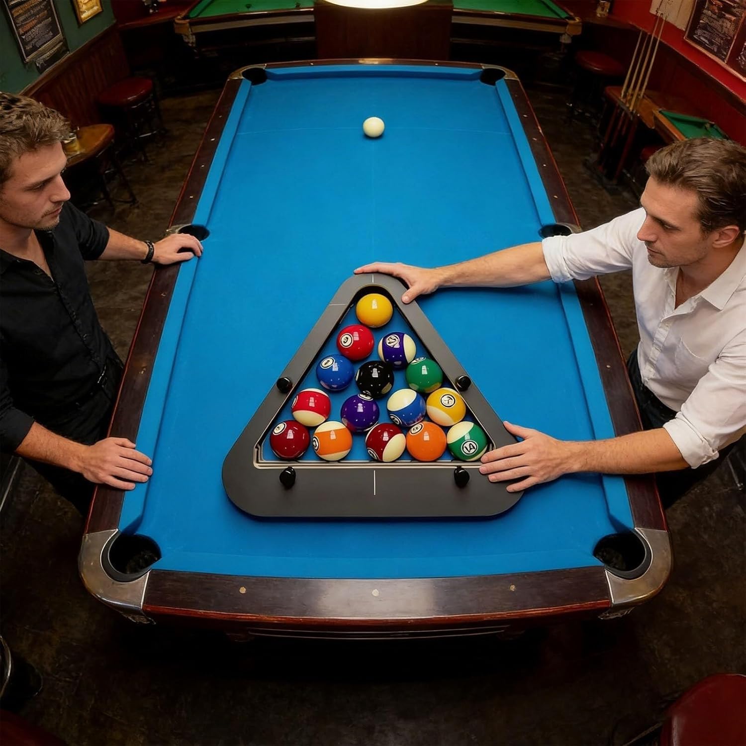 Product DescriptionElevate your game with the Professional Pool Ball Billiard Rack, engineered for precision and reliability. This next-generation rack features an innovative adjustable locking system that automatically eliminates gaps between balls, ensuring a perfectly tight and consistent rack every time. Designed specifically for both 8-ball and 9-ball games, its pro diamond/triangle shape and intelligent design take the guesswork out of racking, delivering a solid, repeatable formation in seconds.Crafted from durable, heavy-duty materials this rack is built to withstand rigorous daily use while maintaining a sleek appearance. Its robust construction provides the rigidity and stability required for serious competition, professional pool halls, and dedicated home tables. The adjustable mechanism accommodates minor variations in ball size, guaranteeing an exact fit and optimal pressure distribution for a powerful and fair break.Engineered for performance and ease, this rack solves common frustrations like loose clusters and uneven gaps. Simply place the balls inside, and the precision components align them automatically—no tedious manual adjustments needed. Ideal for training drills, competitive play, and enhancing your home pool table setup, this rack is the essential accessory for players who demand accuracy, durability, and professional-grade results.