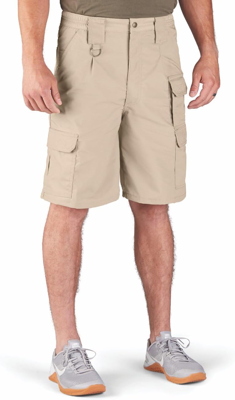 Keep your gear by your side with the Propper Mens Tactical Short. With nine pockets, there is room for everything you need. The polyester/cotton ripstop naturally resists fading, shrinking and wrinkling, while DuPont Teflon fabric protector repels liquids and resist stains. For extra durability and comfort, our Tactical Shorts come with a sturdy snap closure with French fly, heavy duty double seat, reinforced pocket closures, action stretch waistband, and 9 inch inseam.