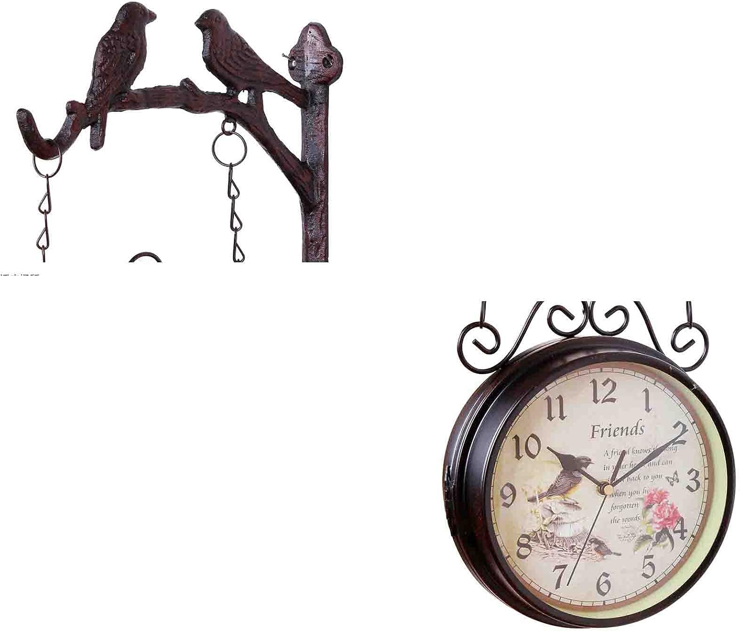 Outdoor Garden Wall Clock Wrought Iron Two Faces Antique Wall Clock Hanging Clock Non-Ticking Clock with Mounting Bracket for Indoor Décor Features: Double Sided Wall Clock This unusual wall Clock, large Wrought iron double-sided wall Clock.One side is the Arabic numeral display, mounted on an artful and sturdy bracket. Rustic vintage design that will provide you with a unique style for your outdoor decor. Forget The Annoying Ticking The silent indoor wall clock using premium movement to make sure will not disturb people around and you will never hear ticktack sounds like other exquisite clock.This clock is a great choice for your indoor decoration. Perfect Decoration :The wall clock looks magnificent above a fireplace mantle piece, a piano, or in any room, and compliment most styles of decorating. Specifications: Name: Outdoor Garden Wall Clock Material: High-quality quartz movement and Metal paint frame Feature: Round, Double-Sided, American Style, Vintage-Inspired Easy to hang from the wall mount, fix firmly. Ideal for living rooms, lobby, porch and corridor. Package Contents : 1 x Double Sided Wall Clock