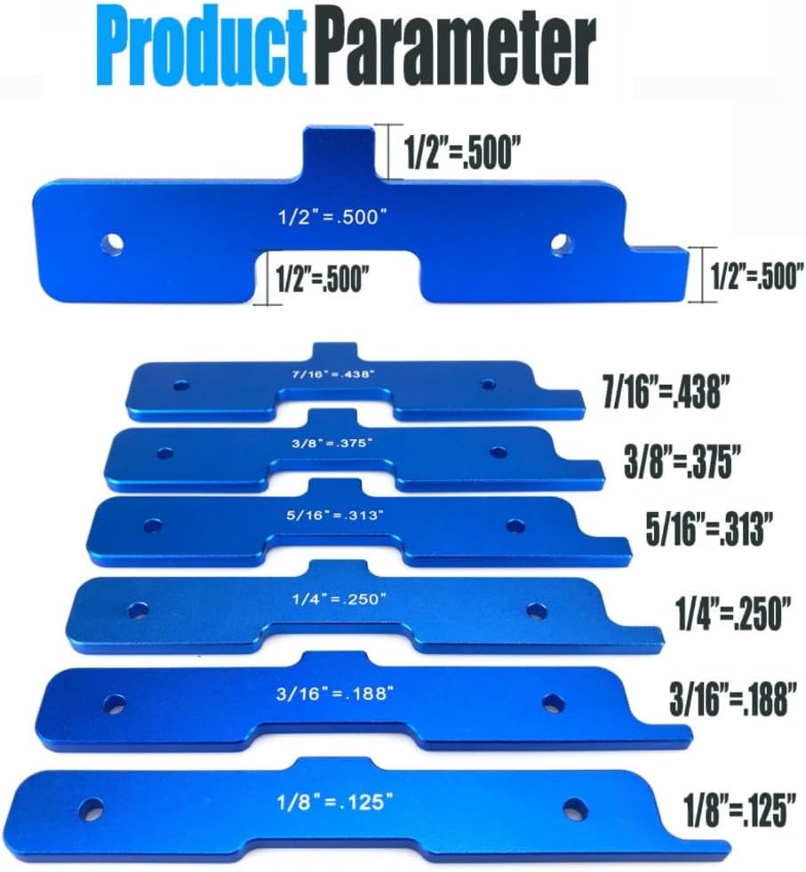 Features: Achieve precise bit and height adjustments with this 7 piece aluminum setup block set for woodworking routers and cutter. Measurements from 1/8" to 1/2" ensures consistent calibration accuracy across multiple tool types including table cutter and milling machines. Professional woodworkers and enthusiasts will appreciate these setup block for maintaining workshop equipment precisions. Essential for cabinet making, furniture crafting, and work requiring exact alignment and repeatable cutting depths. The hard anodized finish resists wear during frequent use while clearly simplifies complex tool configuration tasks. Specifications: Component: Aluminum Product Specifications: 1/2", 7/16", 3/8", 5/16", 1/4", 3/16", 1/8" note: Please allow 1mm errors due to manual measurement. Due to the differences between different monitors, the picture may not reflect the actual color. Package Includes: 7Pcs Router Table Setup block