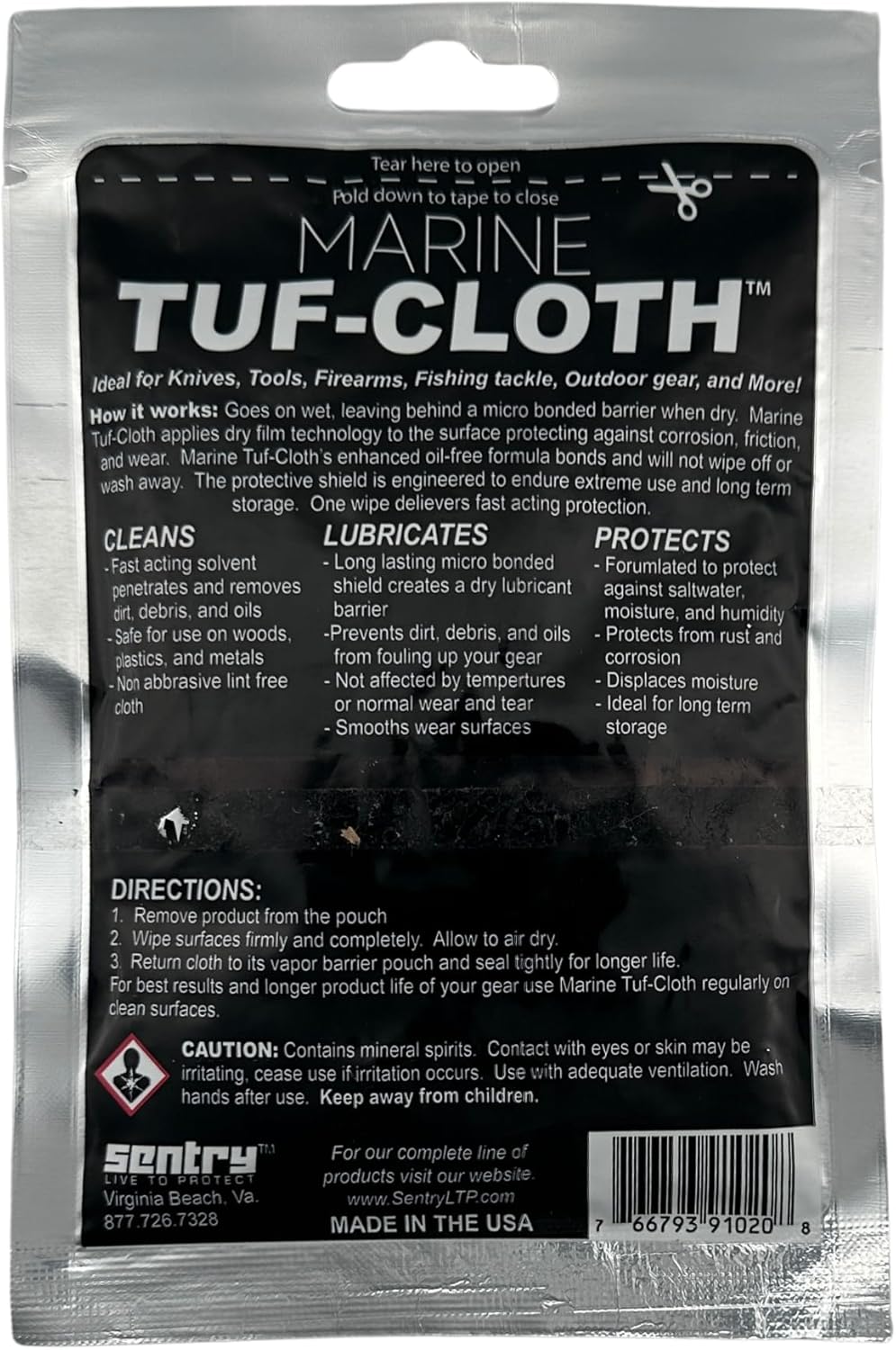 Marine Tuff cloth is based on the original Tuff cloth technology but formulated for use in highly corrosive environments, such as saltwater or high humidity. Offers unsurpassed protection for anyone that carries a concealed firearm. Available in convenient cloth or bottle applications.