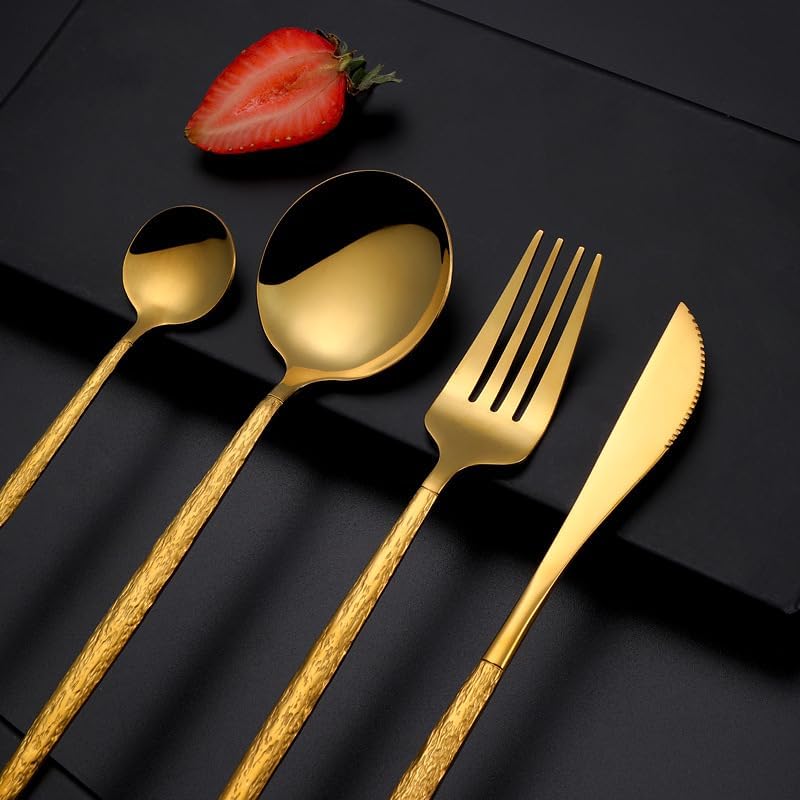 Product Category: Knives, Forks and SpoonsItem Number: Embossed Portuguese TablewareMaterial: Stainless steelPolishing process: Cloth polishing (mirror polishing)Applicable objects: AdultsPattern: reliefStainless steel material: 410 stainless steelColor: Gold four-piece setColor: Silver four-piece setProduct quality level: premium product.About our BrandOur brand is GOODJAYVEN. We have always been committed to Household items. Do our best to bring more creative products to our customers.