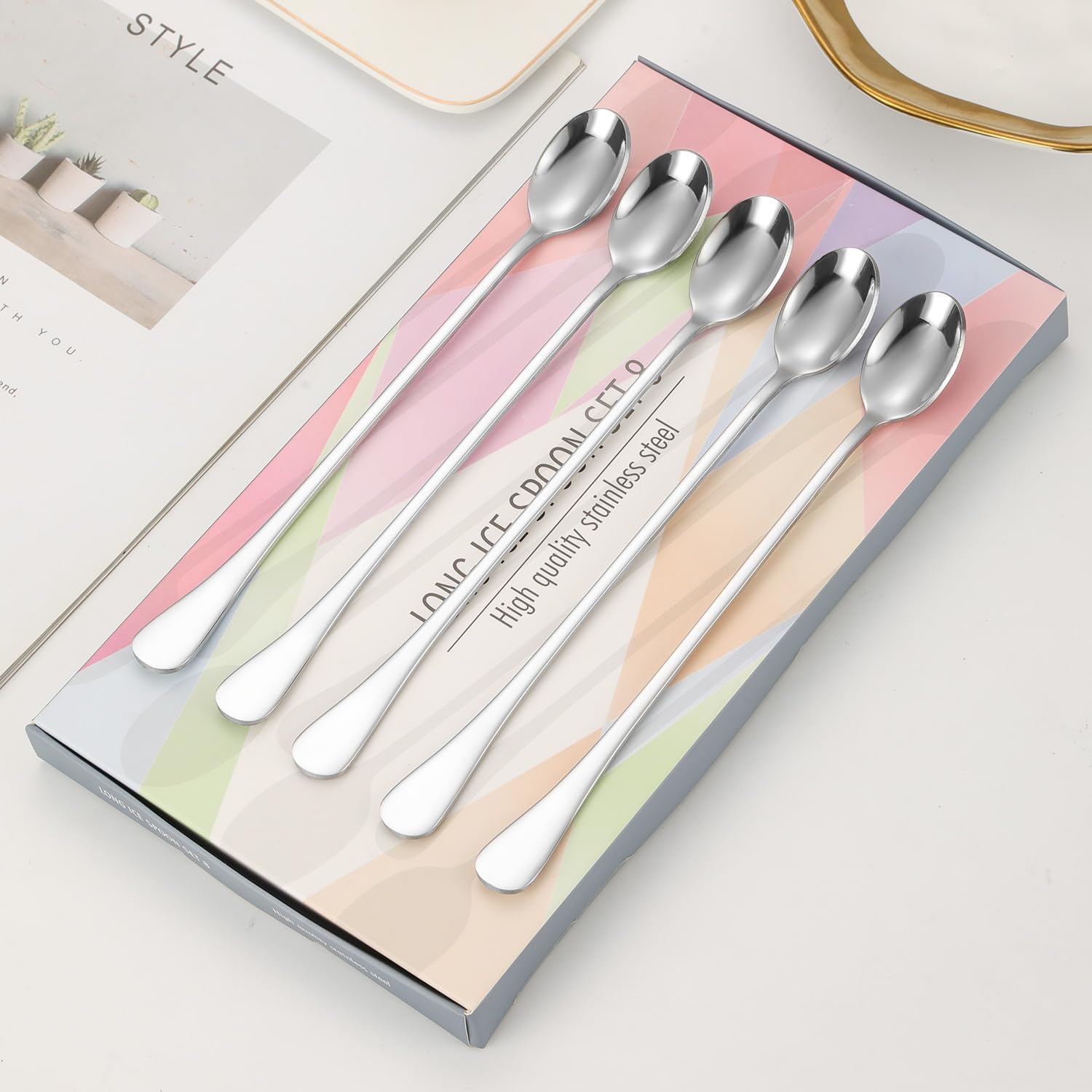 Silverware Flatware Set, 8/32/48/64/80/96 Pieces Stainless Steel Extended Handle Pointed Ice Spoon Set Summer Milk Tea Bar Cocktail Spoon Stirring Spoon(32 Pieces)
