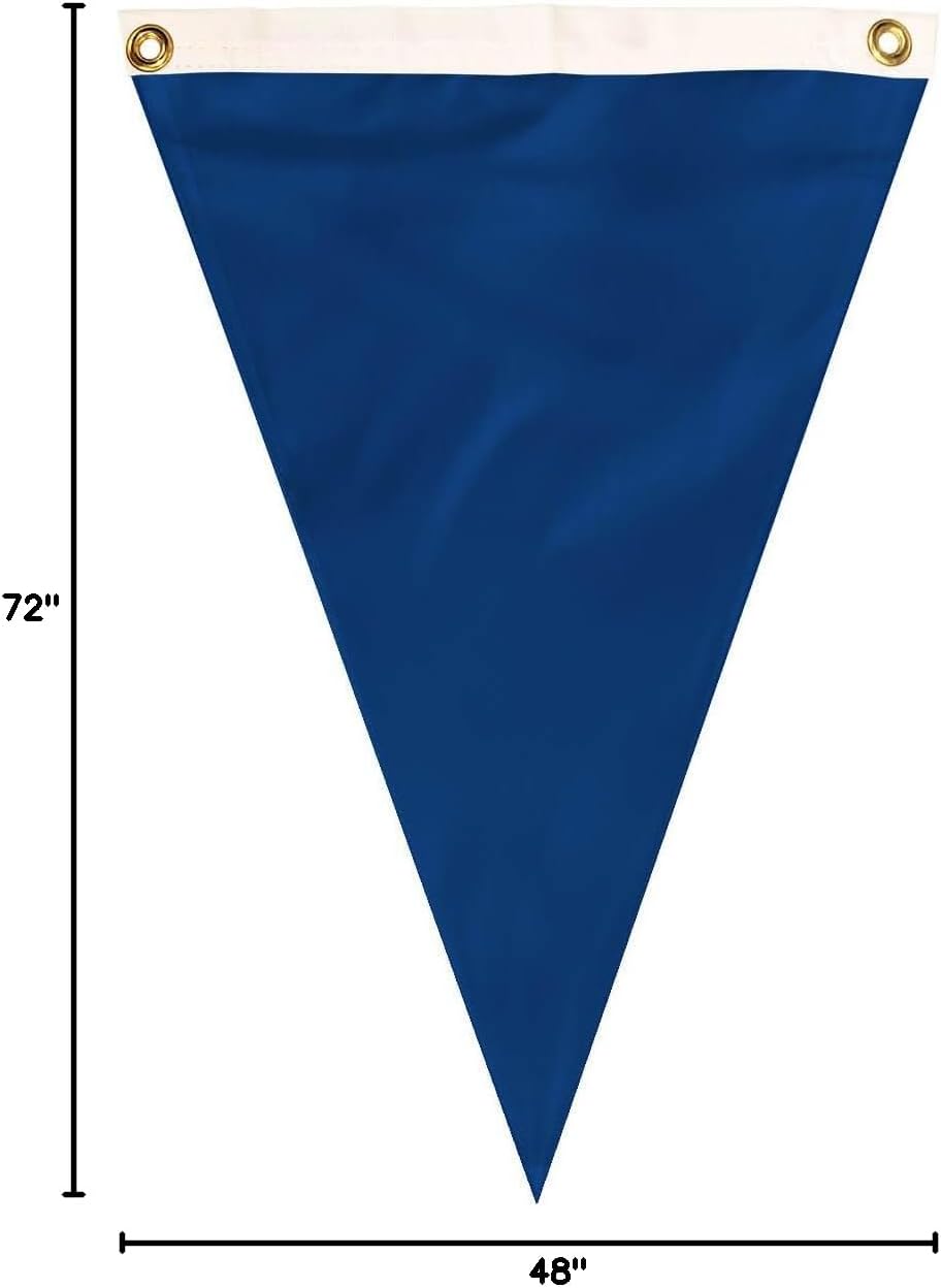 The ruby pennants are made from a solid color nylon material with canvas heading and brass grommets. Great for retail environments and party decorations. Take a look at our large flag selection for decorating ideas. Custom sizes are available.