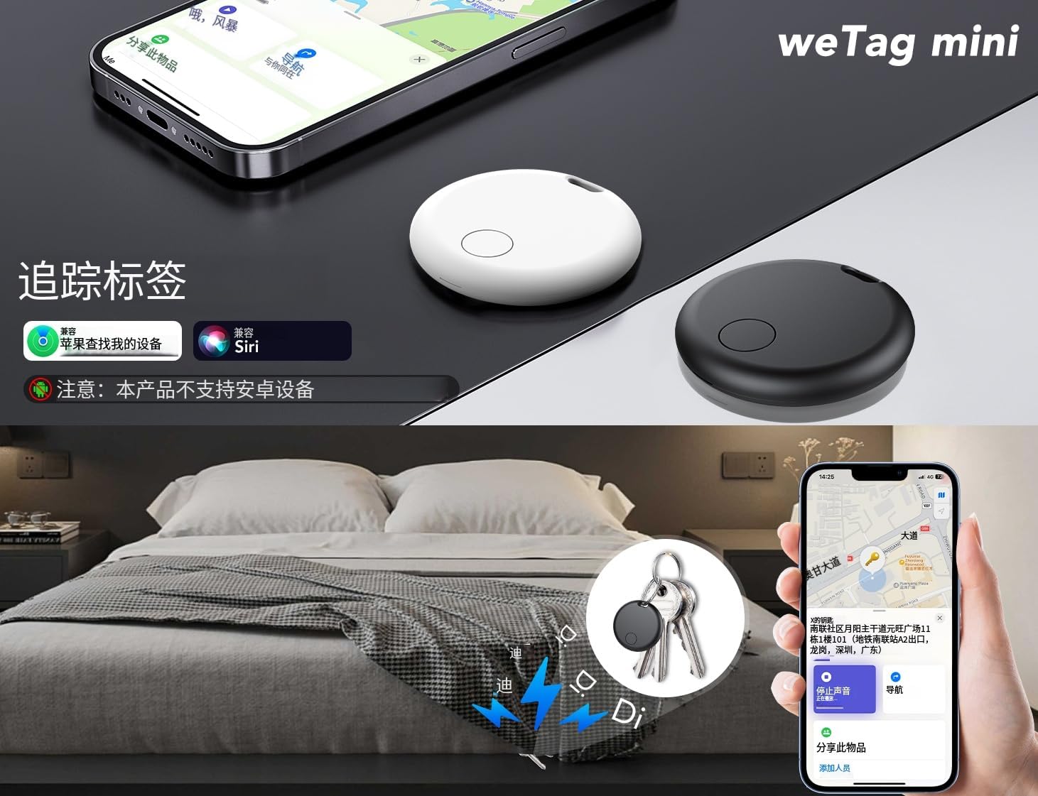 Smart Tracker Tag Item Finder 4Pack, Compatible with Apple Find My APP (iOS Only), IP67 Waterproof, Replaceable Battery, Suitable for Luggage, Bags, Wallets, Backpacks, Keys (weTag mini)
