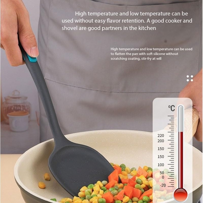 : Spoon and spatula setMaterial: Silicone,Stainless steelSize: As shownColor: As shownFunctions: Cooking, bakingThe set includes: Frying spatula, soup spoon, ladle, salad spoon, etcCrossbody bag:Shovel and spoon set *1 set(Excluding display items)Attention:1. Due to manual measurement, please allow 1-2cm error. Please understand,Thank you2. The actual color of the product may be slightly different from the color shown in the picture. please refer to the actual productInvesting in a handy set of spatulas can significantly enhance the smoothness and enjoyment of cooking.
