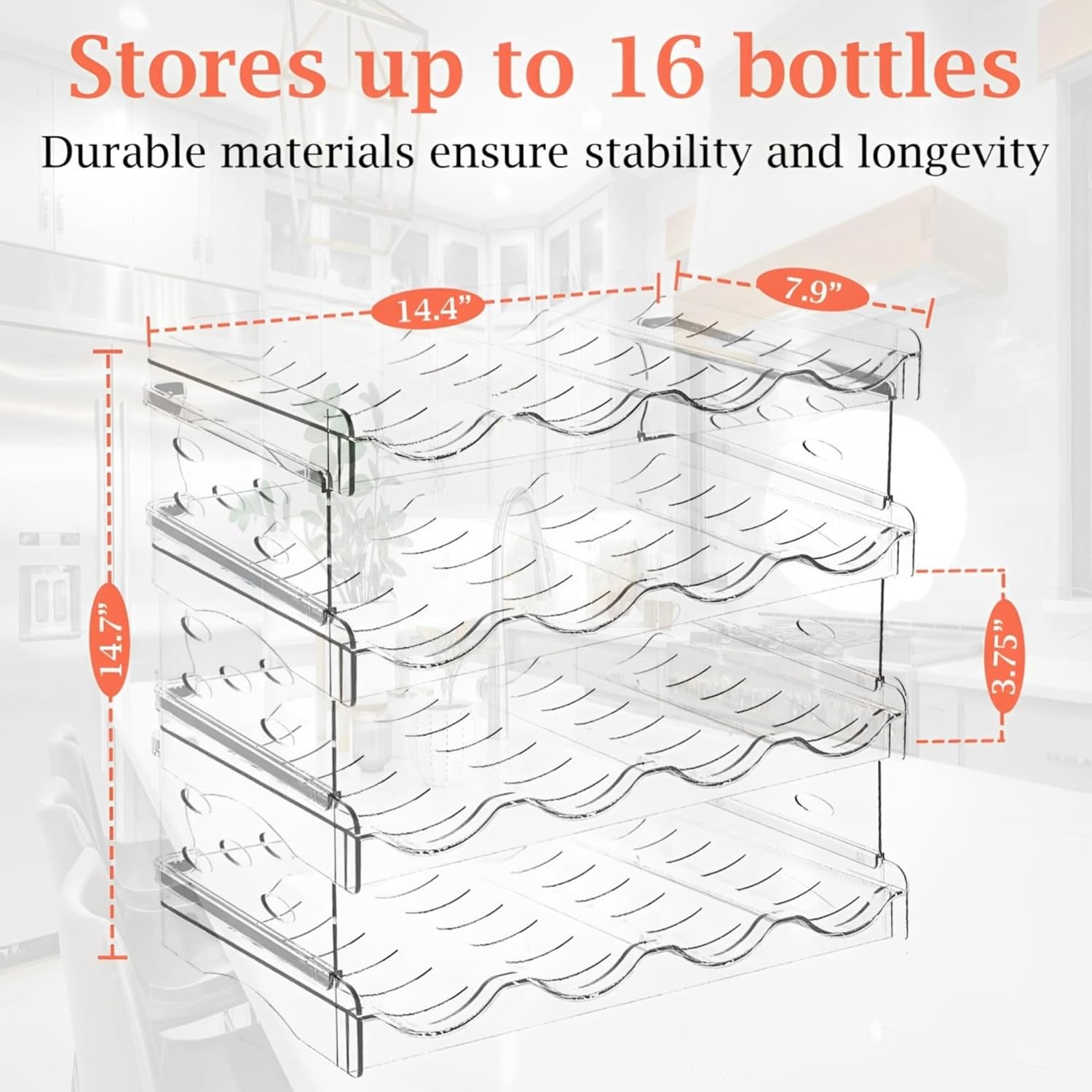 • Durable Clear Plastic Construction: Water Bottle Holder is built with premium transparent plastic for strength, visibility, and modern style. The Clear Space Water Bottle Organizer material offers a sleek, contemporary aesthetic that blends well with kitchen decor and allows easy identification of stored items. The sturdy Blender Bottle Organizer construction ensures safe bottle support and long-lasting organization.