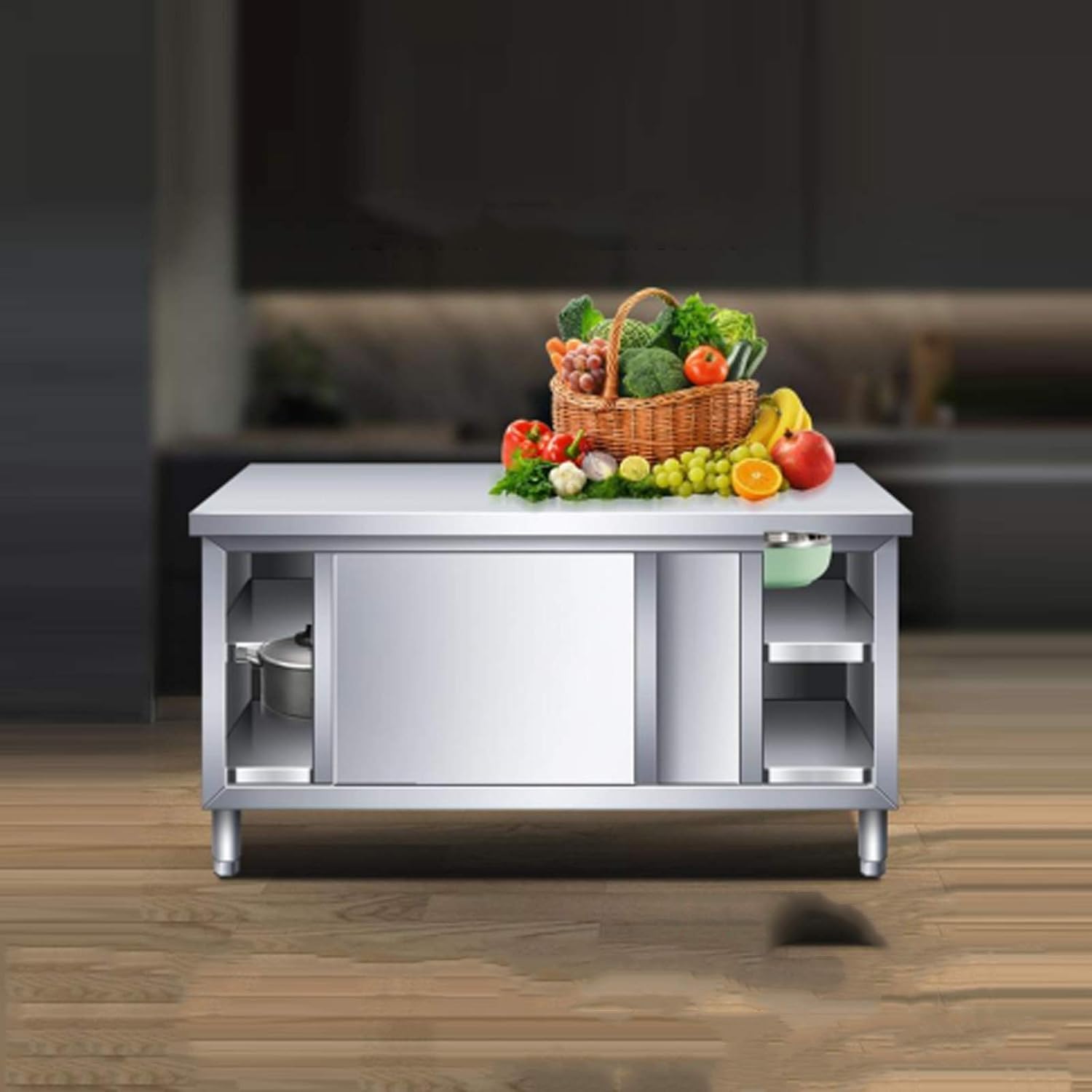 Product parameters: Product name: Special kitchen workbench Material: Non-magnetic 201 stainless steel Installation method: assembled Scope of application: kindergartens, construction sites, canteens, supermarkets, hotels Style: single pass/double pass Product process: wire drawing process Product Details: 1. Smooth track: One-piece design is smoother to push and pull, easy to clean and no dirt 2. Thicker countertops: thicker countertops bear more weight without fear of chopping big bones 3. Reinforcing ribs at the bottom of the laminate: Reinforcing ribs support, enhance the load-bearing capacity, and be