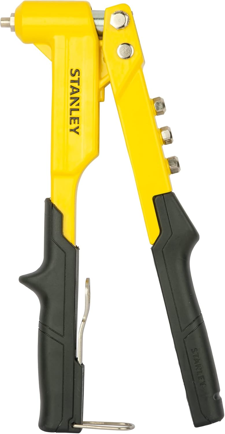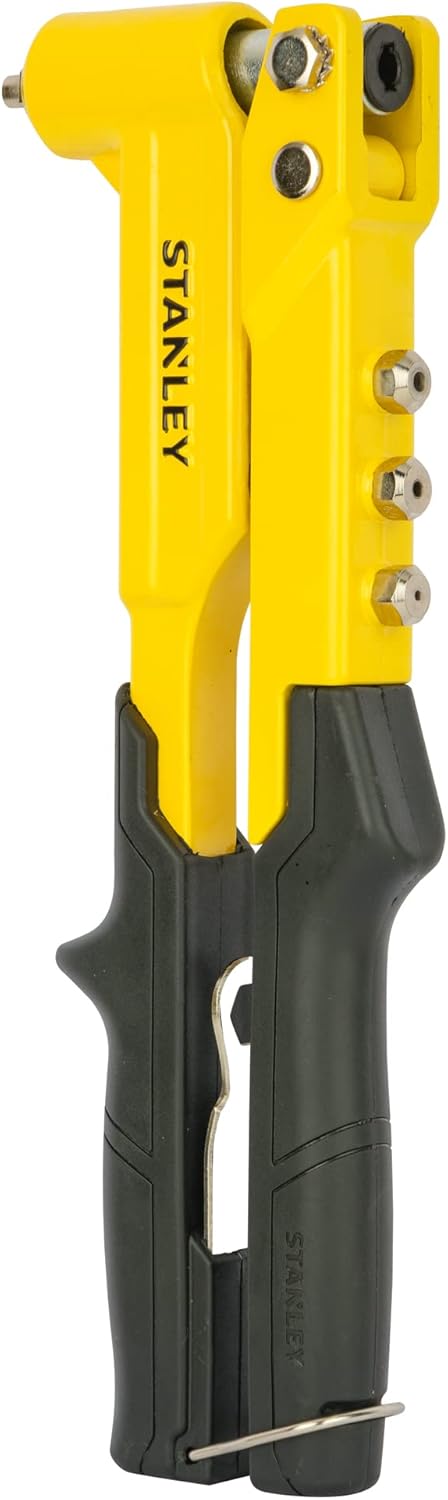 Product Description This Stanley MR100 contract grade, heavy-duty, long lasting all-steel riveter is supplied with 4 nose pieces and a wrench, stored in its handle for versatility and convenient storage.It accepts 3, 4 and 5mm aluminium, steel and stainless steel rivets for wide range of applications. The Stanley Works, originally a bolt and door hardware manufacturing company located in New Britain, Connecticut; was founded in 1843 by Frederick T. Stanley. A few years later, in 1857, Fredericks cousin, Henry Stanley, founded The Stanley Rule and Level Company. In 1920, The Rule and Level Company merged with The Stanley Works and would go on to become its famous Hand Tools Division. From the timeless Classic 199 "Stanley Knife", a design icon of the 20th century, to the new range of "FatMax" hand tools, innovation and quality are synonymous with the Stanley name. Stanley is the number one brand for tools - demanded for their performance by professionals, enthusiasts and DIYers alike. Stanley in the 21st century is much more than just knives. In addition to the world famous hand tools, the Stanley range now includes paint brushes and rollers, sliding doors, pneumatic fastening solutions and mechanics' tools. Set Contains: STA6MR100 Fixed Head Riveter