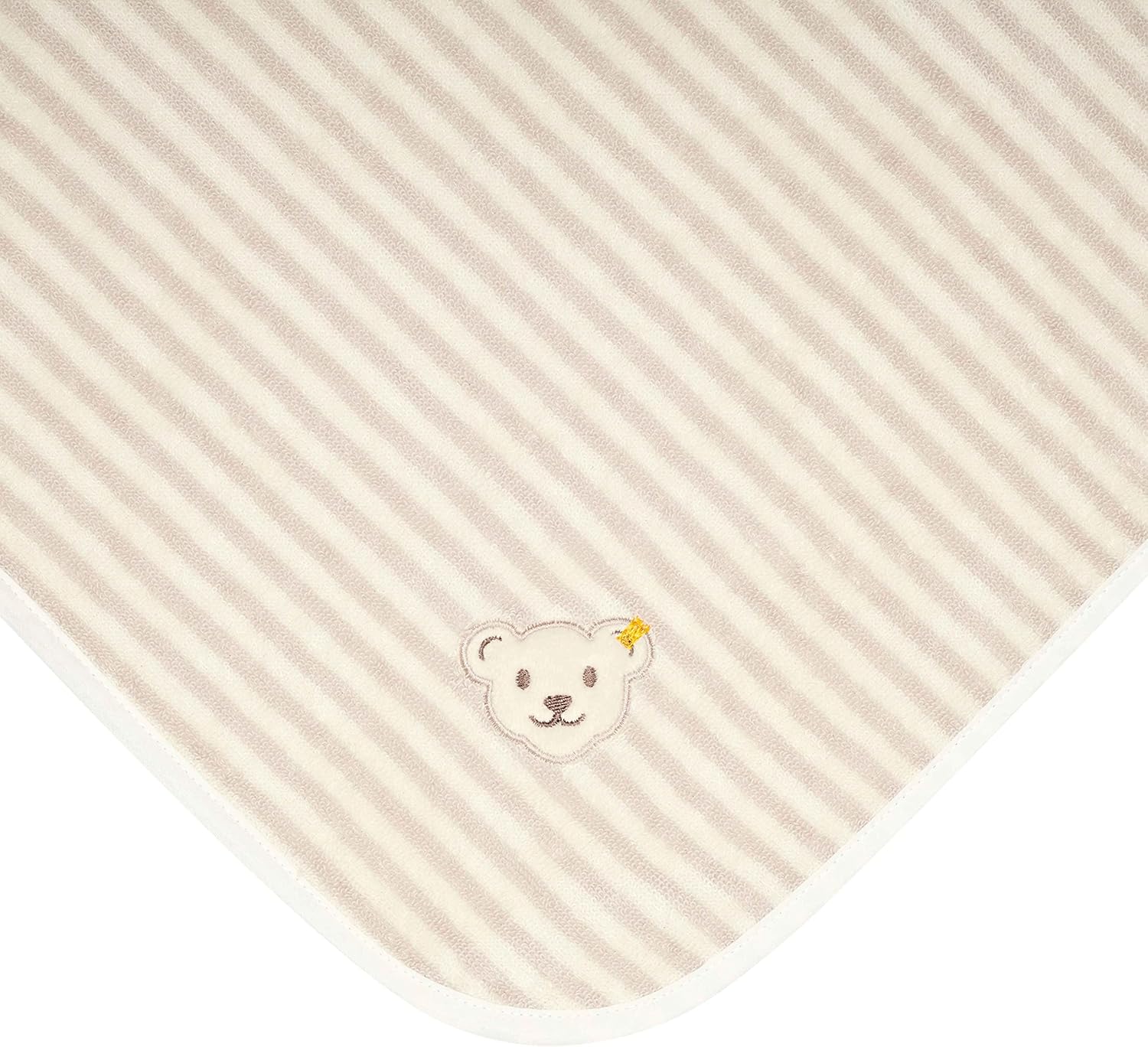 You can cuddle up in our hooded bath towel. Fluffy soft terry cloth dries and pampers sensitive skin particularly pleasantly. Durable edges keep the towel in shape at all times. Whether after a cat wash, time in the bathtub or on the go in the pool, the large hood protects the head with cosy warmth. Delicate stripes in offwhite and ecru fit into any bathroom and give a lot of fun as a gift. An embroidered teddy bear face with protruding ears on the hood keeps eyes open for your little one and the fluffy Steiff teddy bear motif is also included. Dimensions: 100 x 100 cm