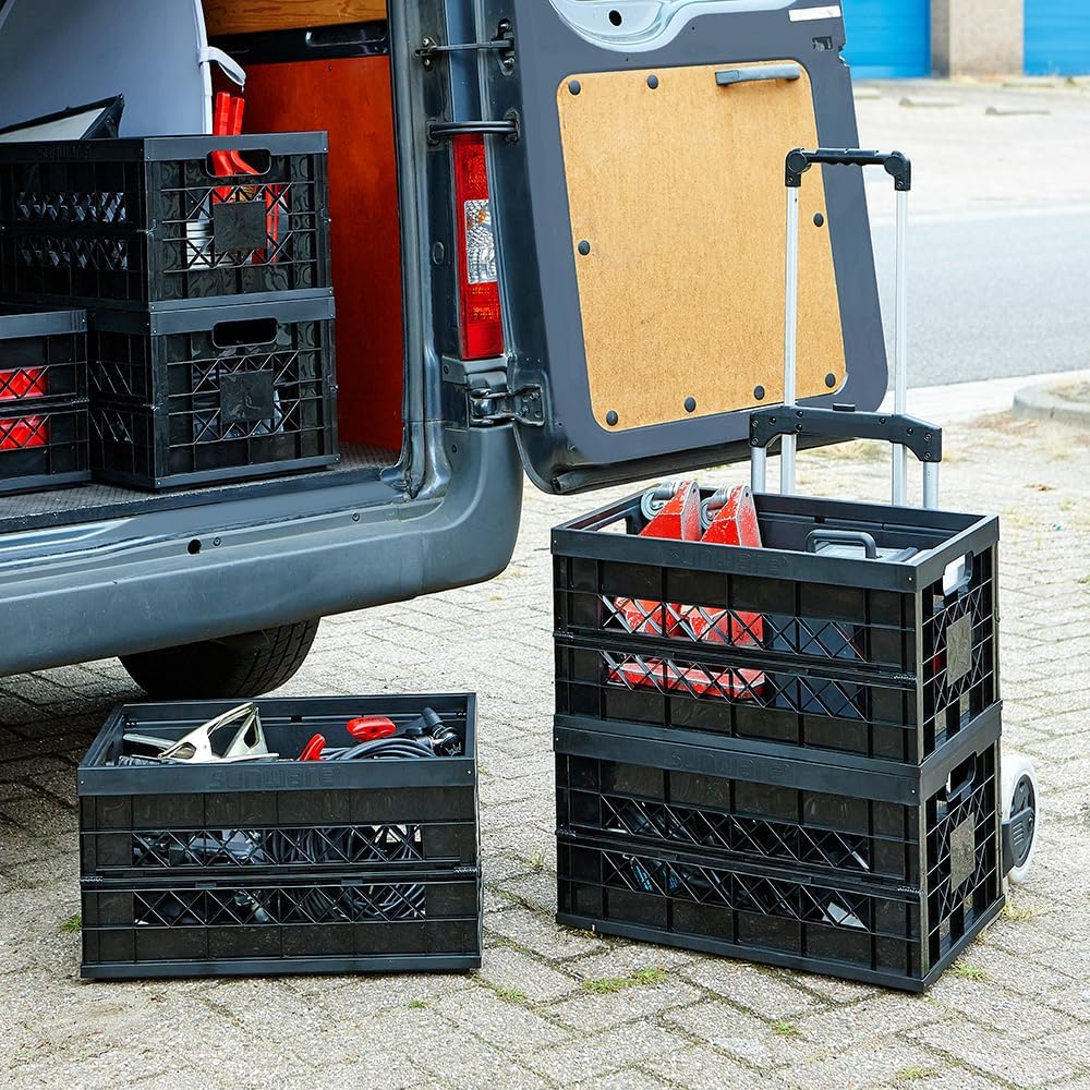 Square folding crates are true portable storage solutions especially useful when doing shopping and going camping. It is easy to fold in and fold out. Product available in optimized weight with 45 litre capacity. Product available in Anthracite colour with dimension of 53 x 35.4 x 28.4 cm. Made in Netherlands.