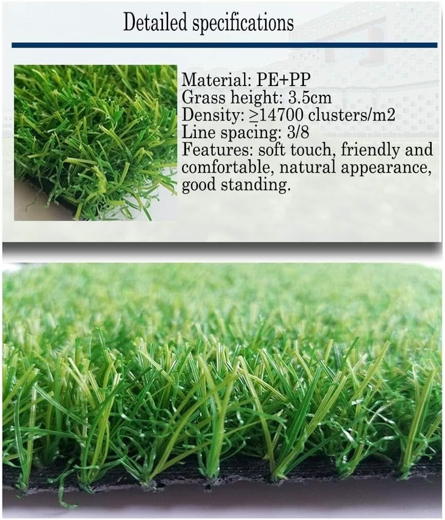 Enhance your outdoor or indoor spaces with Synthetic Artificial Grass Turf—a high-density, realistic faux grass designed to provide long-lasting beauty and functionality. Measuring 3.3ft x 3.3ft (10.76ft²), this turf mimics the look and feel of natural grass with its soft, lush texture and 0.11ft thick blades, ensuring a comfortable and safe environment for kids and pets.Crafted from PE (polyethylene) material, this synthetic turf is designed to withstand the elements, offering UV protection, fire resistance, and resilience against wear and tear. It’s perfect for gardens, lawns, balconies, patios, or courtyards, as well as indoor areas like living rooms or play zones.This artificial grass mat is built for easy maintenance, with automatic water permeability to allow quick drainage and prevent water buildup. Say goodbye to the hassle of mowing, watering, or fertilizing, and enjoy a beautiful, low-maintenance lawn that stays green and lush year-round.Whether you're creating a vibrant garden, decorating your deck, or simply adding a comfortable rug inside, this synthetic grass provides a versatile and solution that combines beauty, comfort, and durability.