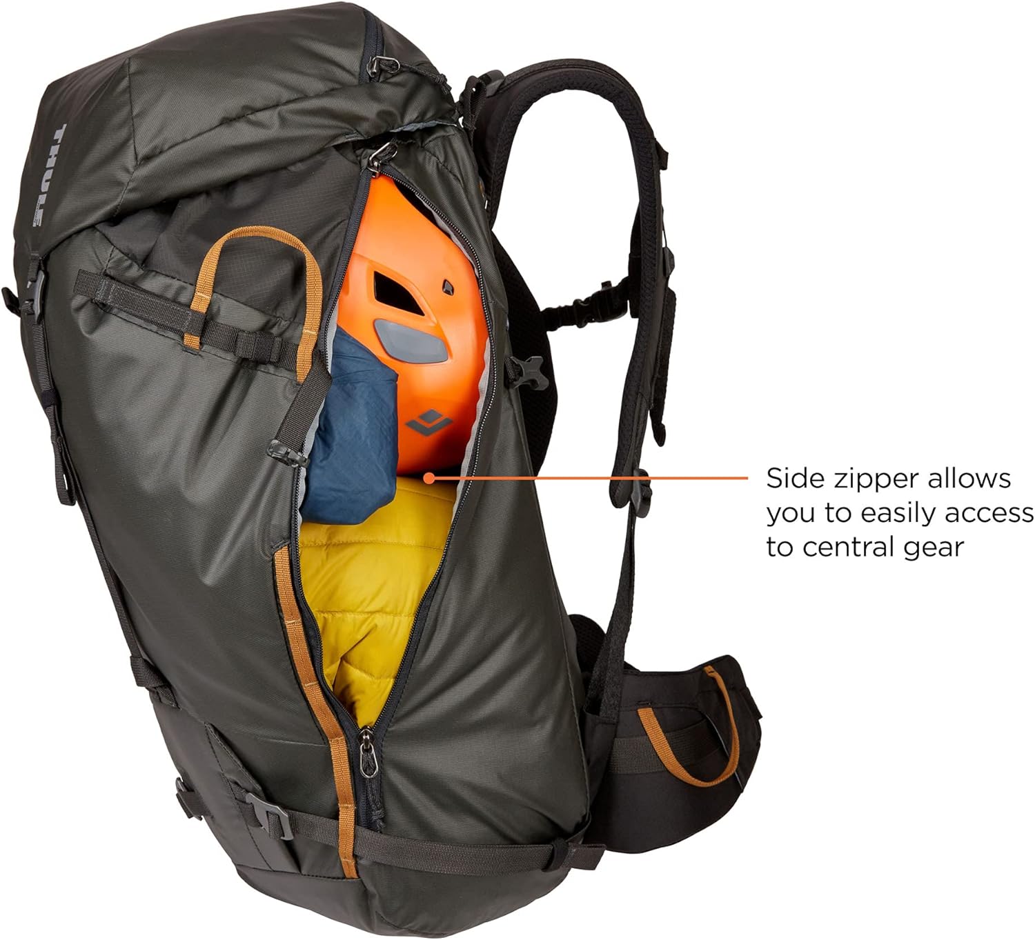 The Thule Stir Alpine 40L Hiking Backpack is built for next-level backcountry adventures. Thoughtfully designed with all of the features you need to keep your gear - both big and small - organized and accessible. Made with a coated 70D nylon fabric, it is supremely weather- and abrasion-resistant, yet it weighs in at an impressively lightweight 2.8 lb. When gearing up for an outing that requires minimum weight, you can remove components of the backpack (lid, frame sheet, hip belt padding and sternum strap) to lighten the load by 1.1 lb, for a total pack weight of 1.7 lb. A variety of externally placed fixed loops and adjustable straps are carrying skis, ice axes, trad and sport climbing gear and more, making this backpack a year-round adventure staple. The wide opening allows you to load contents to maximize the space inside, while the side zipper gives you easy access to the middle and bottom of the pack, so you can reach reach what you need at all times. Under the lid, a compression strap is placed to hold items like a coiled climbing rope, jacket, or other soft gear; when the lid is removed, the backpack contents are protected by a storm flap. With features like hydration reservoir compatibility and a shoulder strap snack pocket, the Thule Stir Alpine allows you to get out further and stay out longer.