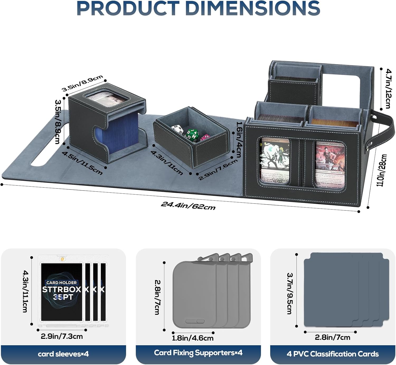 | Included Components | 1 Card deck box, 4 Colorful Dividers, 4 Stoppers, 4 Toploaders |