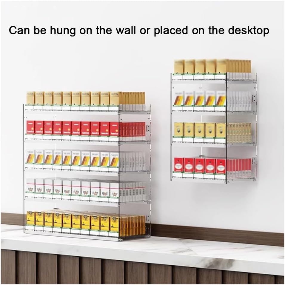 • 2,Cigarette Showcases:Easy Installation: Our versatile Display Rack offers two installation methods—wall-mounted or countertop placement—efficiently saving valuable space. Perfect for organizing your kitchen, bathroom, or office, this stylish solution enhances any room's decor while keeping your essentials within reach. Upgrade your storage with this functional and sleek accessory today!