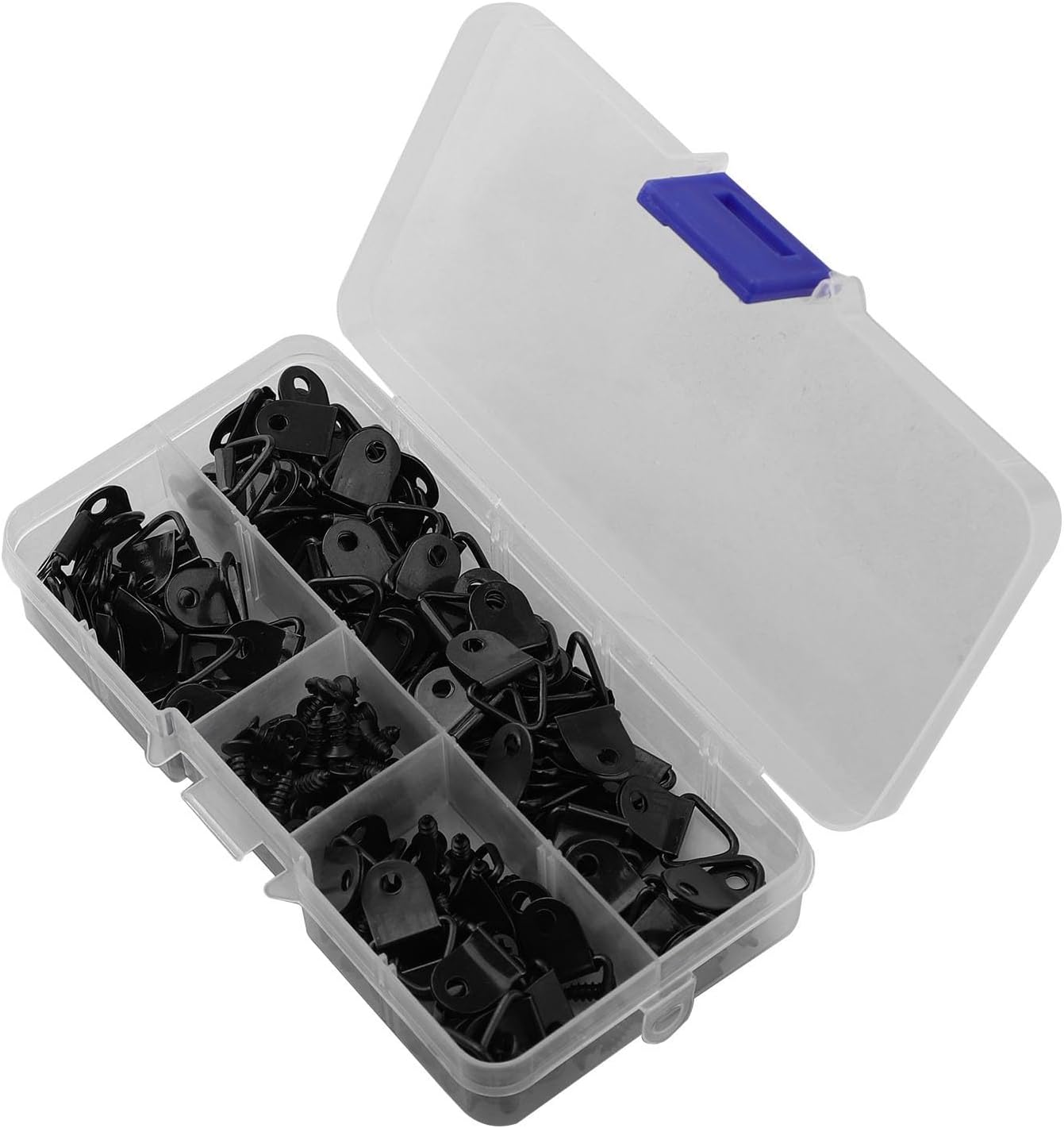 Product description Features:*Small D-Ring Picture Frame Hooks, Triangle Picture Frame Hooks, Single Hole D-Ring Triangle Hooks with Screws*Triangle D-ring hangers are made of metal, good quality and sturdy.*You will receive frame hooks 100pcs + screws 100pcs in large quantity to meet your daily needs.*Metal triangle hooks can be mounted on picture frames for hanging photos, paintings, posters, mirrors, stylish wall clocks and other wall decorations.*All metal triangle hooks come in a clear plastic box for easy storage and portability.Specifications:*Part Name: Triangle Picture Frame Hook*Material: metals*Box Size: 13x7x2cm*Color: black*Quantity: 100*Fitment: for hanging photos, paintings, posters, mirrors, stylish wall clocksPackage Content:100pcs x frame hooks 100pcs x screws Manufacturer Contact Information no