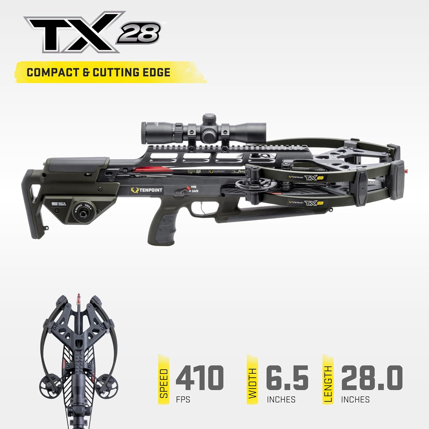 TX 28 Crossbow - 410 FPS - Equipped with 100-Yard RangeMaster Scope, ACUslide MAXX Cocking & De-Cocking System + TriggerTech Trigger