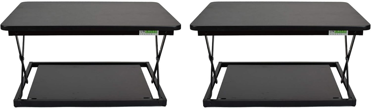 Break Free from the Monotony of Sitting with a simple, height-adjustable stand up desk converter Ever wonder why sitting all day can be so exhausting? It's not just about physical fatigue; it's about your creativity, your energy, and your overall well-being taking a hit. But fear not, because we have the adjustable height standing desk lift solution you've been searching for! Say hello to our revolutionary sit stand desk riser for laptops and single monitors. This standing desk attachment is designed to break the monotony of endless hours in your chair. This stand up desk converter isn't just a piece of office furniture; it's your ticket to a more dynamic, vibrant workday. Picture this: a perfect-sized 27.5x19.5"" top panel on a table top standing desk that's like a stage for your laptop or single monitor, complete with space for your keyboard and mouse. Say goodbye to cramped quarters and hello to a workspace that adapts to you, not the other way around. Our desk converter to standing is the epitome of elegance in design. The sit-to-stand desk riser is lightweight, portable, and ergonomic. The standing desktop riser collapses to a sleek profile, so it won't dominate your workspace. The straight-up-and-down movement on this stand up desk convertor ensures that your desk stays tidy, functional, and easy to navigate, leaving you with more space to do what you do best – work efficiently.