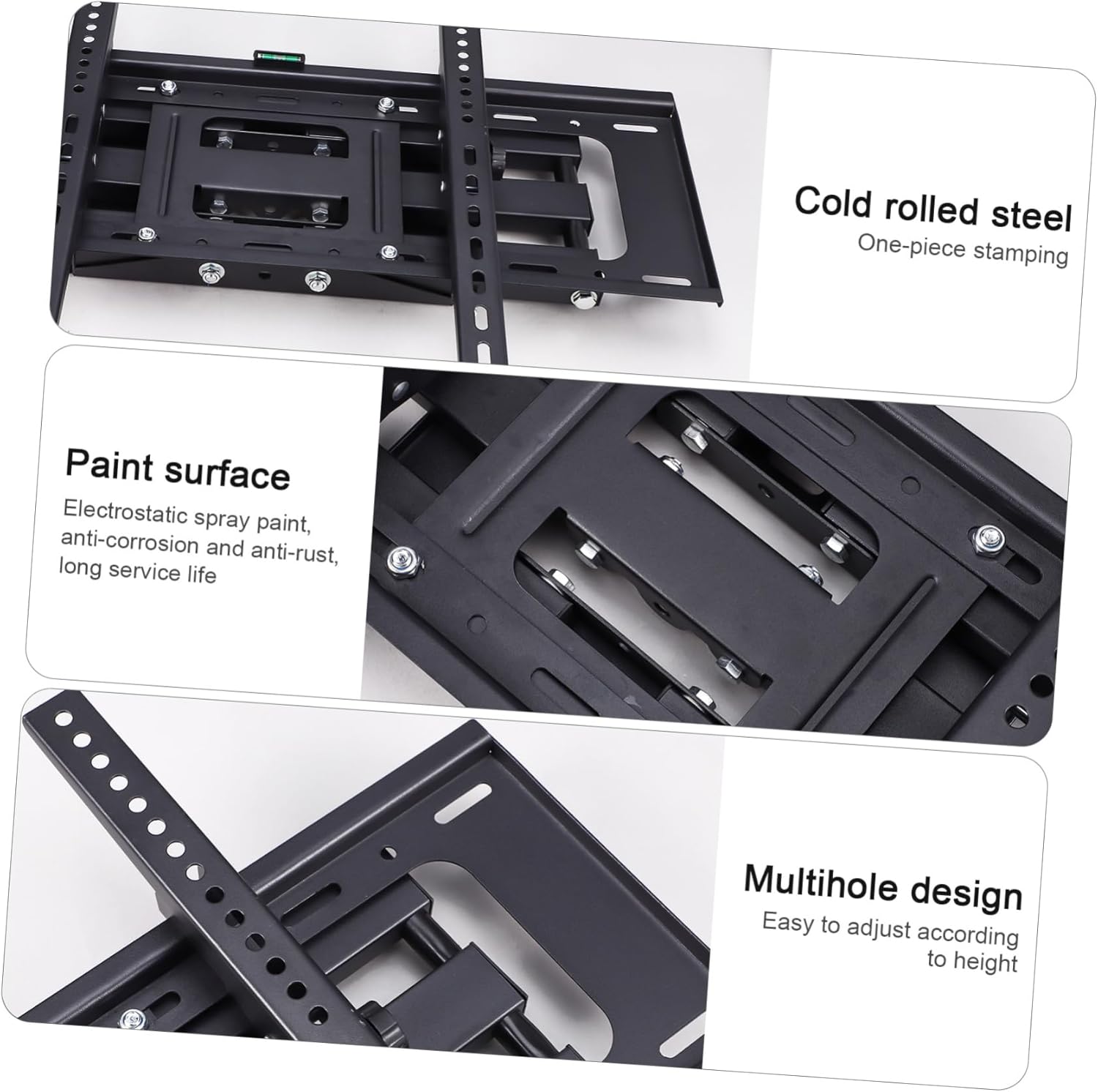Package Include 1 x tv wall mount 1 x screw set Features -Tilt angle:26-55° Swivel Tv Mount - Thickened materials: The tv bracket is made of thickened materials, making it strong and sturdy, with a high load-bearing capacity Wall Tv Mount. - Universal bracket: This tv wall mount is suitable for a wide range , making it a versatile and practical addition to any home Rotating Tv Wall Mount. - Multi-hole design: The tv wall mount features multiple holes, making it easy to adjust the height and install the bracket more conveniently Telescoping Tv Mount. -Size:67.00X22.70X7.60cm/26.33X8.92X2.99in Mounts Bracket -Load capacity: 45KG Tv Wall Mount - Long using life: The rotating tv wall mount is coated with anti-erosion and paint, ensuring it can be used for longer period Universal Tv Wall Mount. -Material:Iron Extended Tv Wall Mount - adjustment: The tv bracket can be adjusted to different angles and positions, providing you great viewing experience Wall Mount For Tv. -Distance from wall: 3cm Swivel Tv Wall Mount -Color:Black Television Wall MountGoods InformationTelevision Wall Mount Looking for a TV wall mount that's both stylish and practical? Our adjustable TV wall mount is the ! With its thick and sturdy construction, this mount is built to last and can support heavy TVs.Extended Tv Wall Mount It is also easy to install, can set it up yourself without the need of sophisticated tools